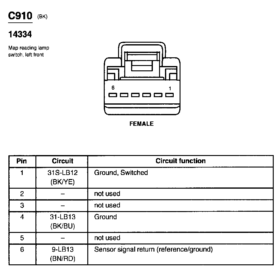 Map Reading Lamp Switch, Left Front