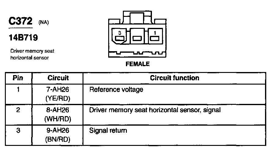 Driver Memory Seat Horizontal Sensor