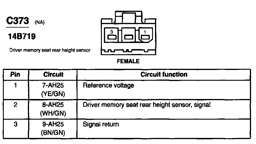 Driver Memory Seat Rear Height Sensor