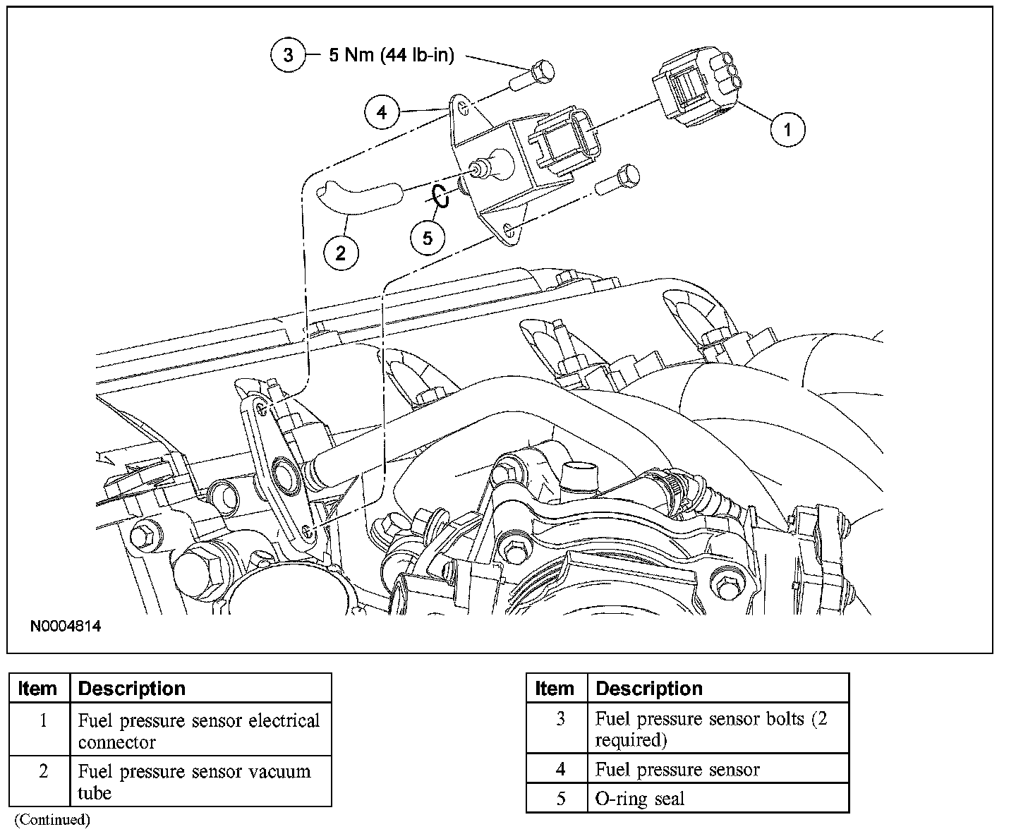 4. Disconnect the fuel pressure sensor electrical connector and vacuum tube.