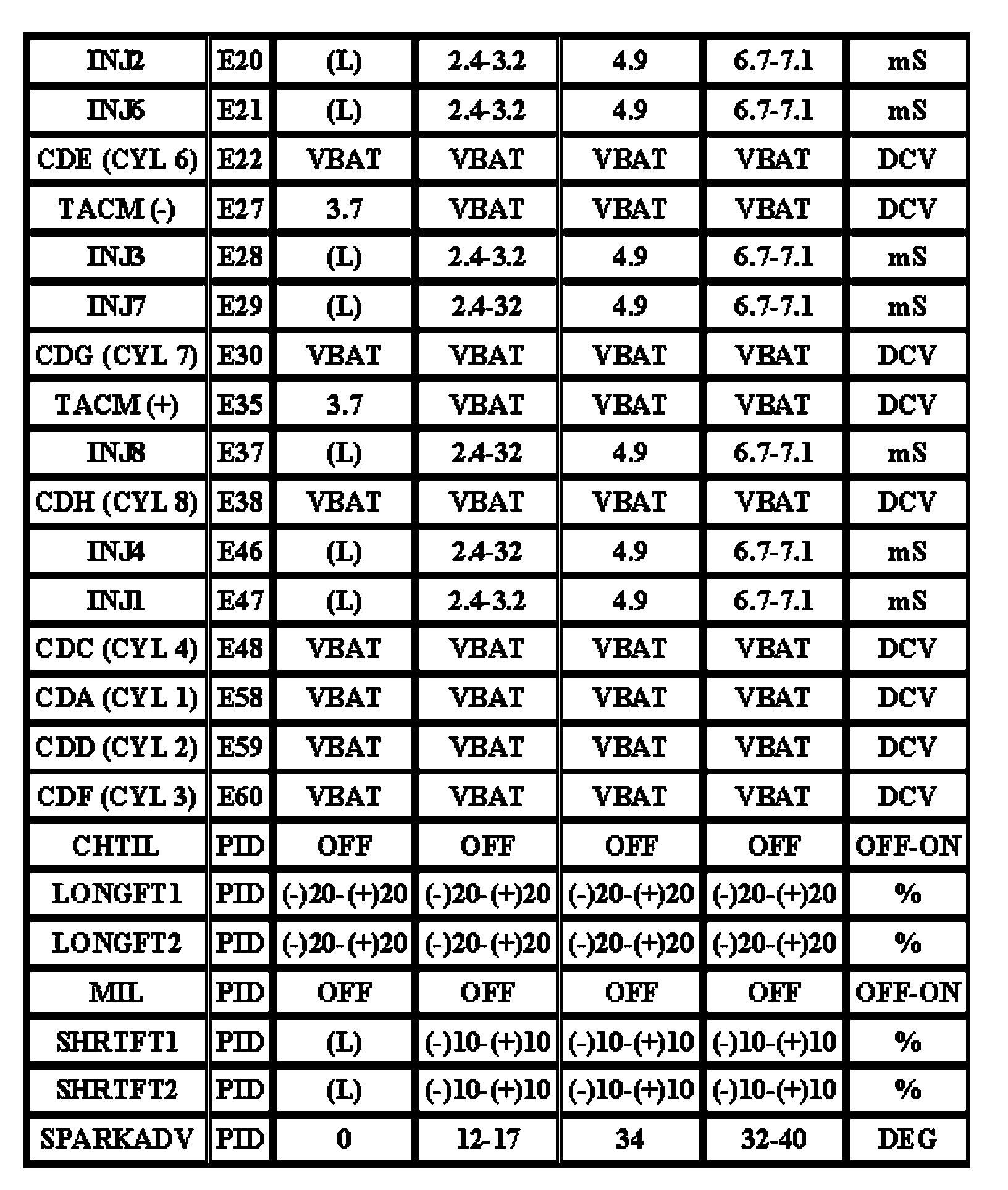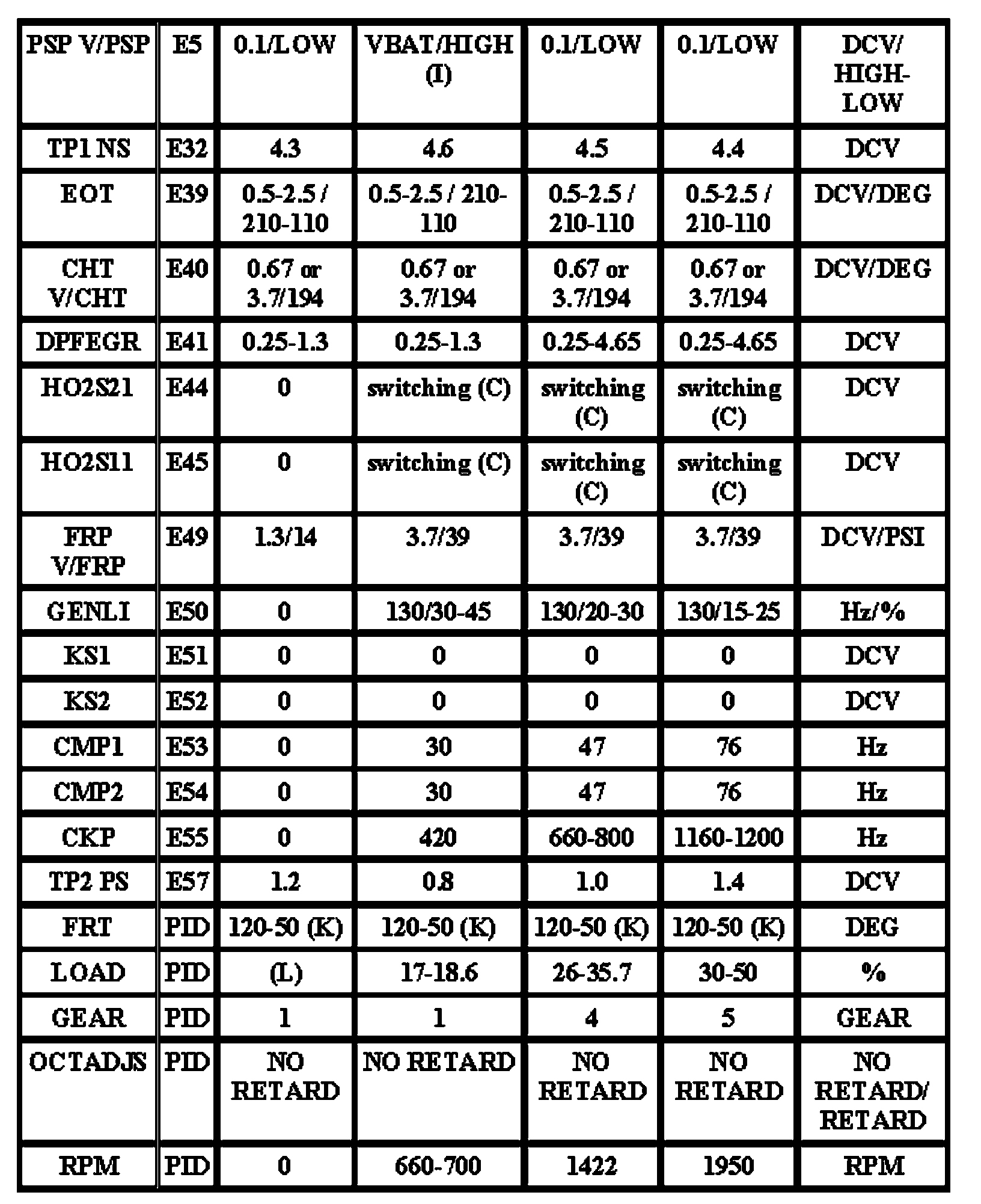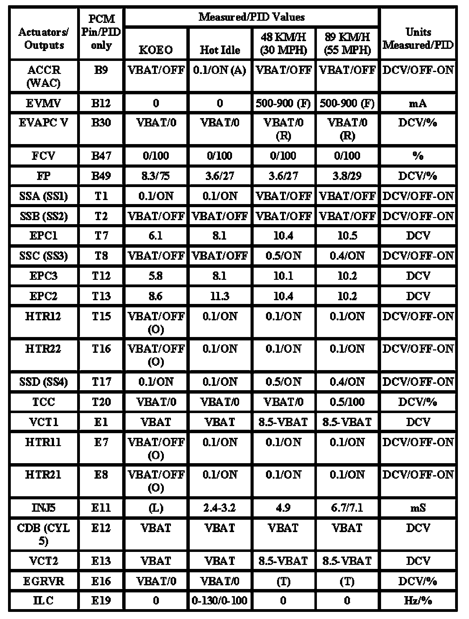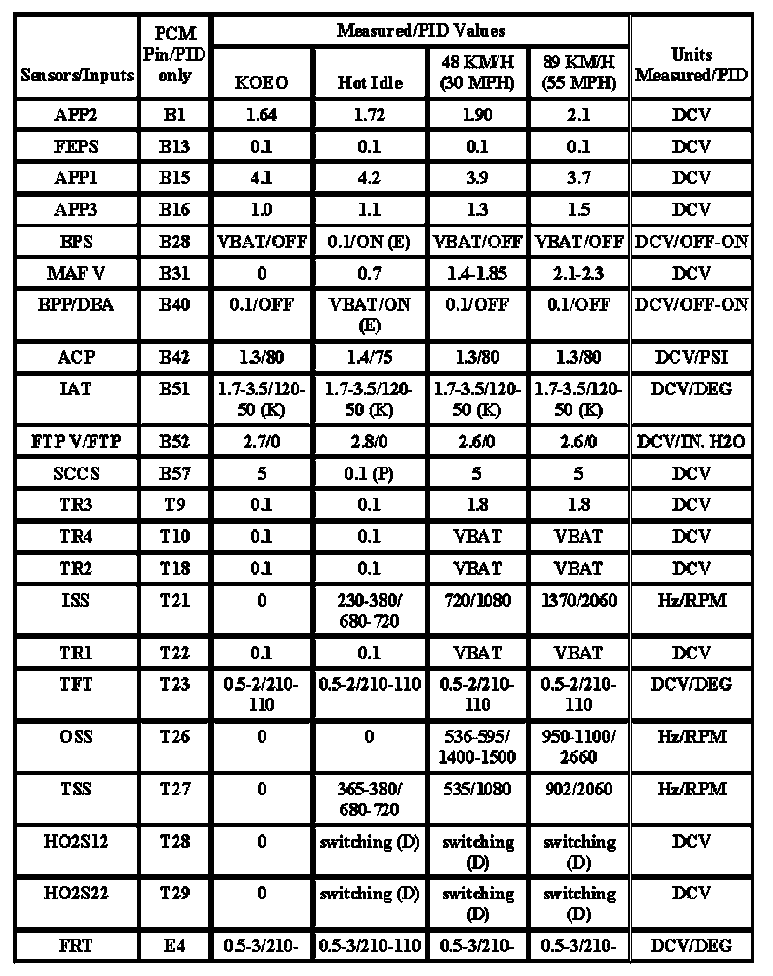 Note: All generic OBD readings under no load (PARK or NEUTRAL).