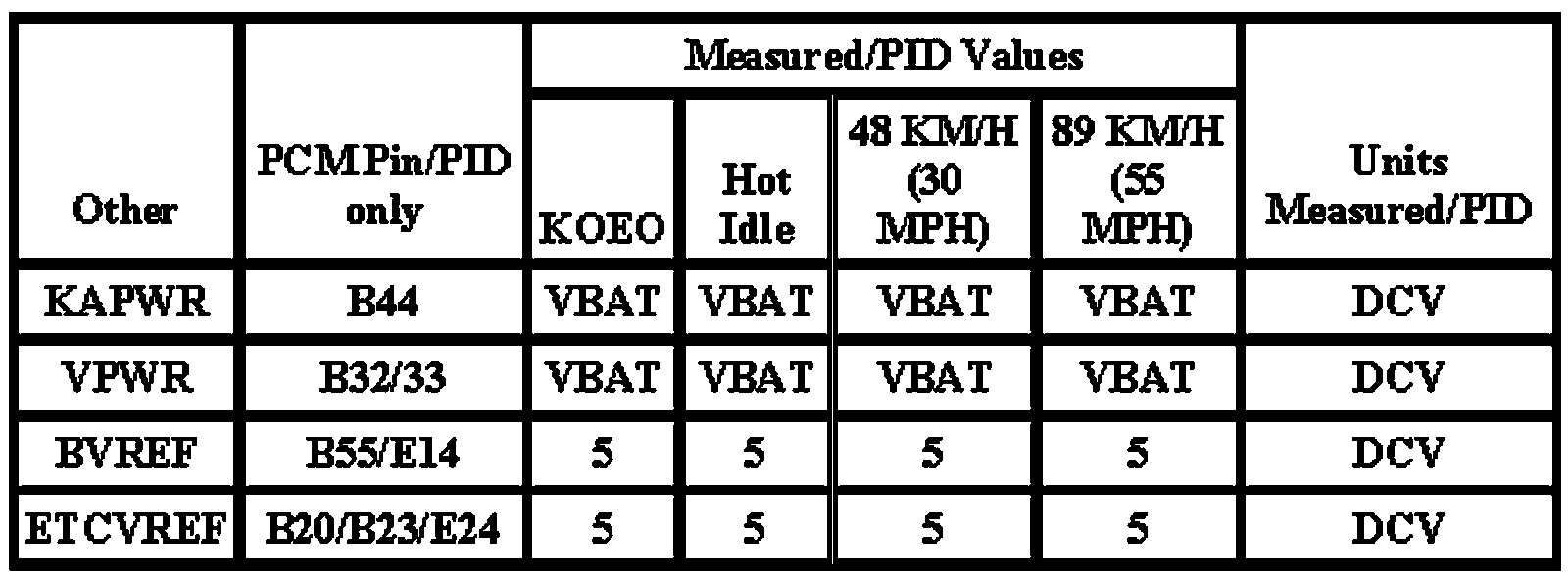 The Typical Diagnostic Reference Value Charts do not display fault PIDs. These are PIDs which indicate a hard fault with the circuit. They display a value of "YES" or "NO" and are PIDs ending with an "F".