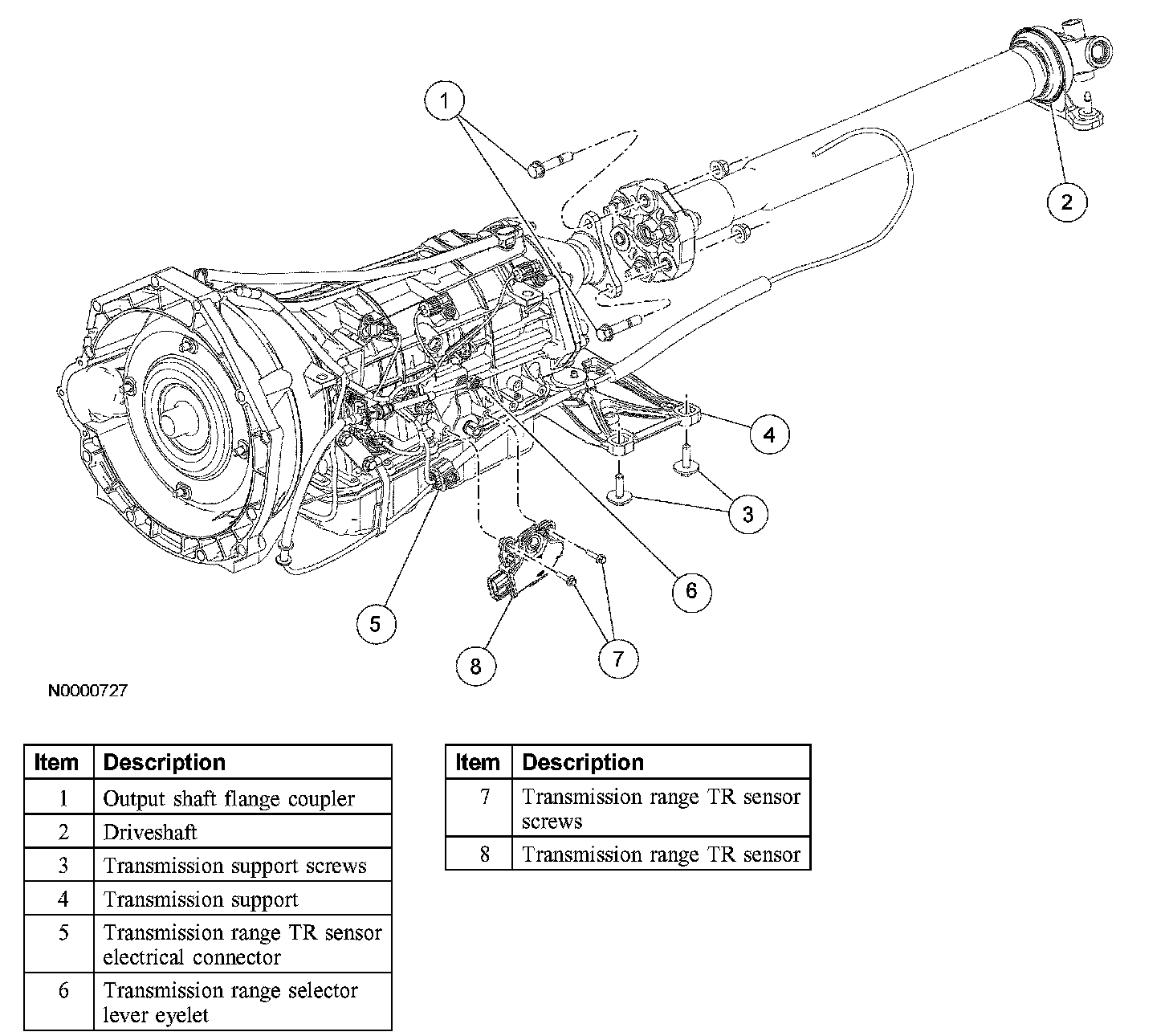 5. Remove the transmission mount crossmember and lower the transmission enough to gain access to the digital transmission range (TR) sensor.