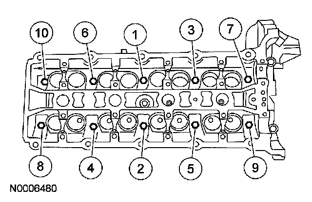 ^ Stage 3: Tighten bolts 1 through 10 to 45 Nm (33 ft. lbs.) and an additional 90 degrees.