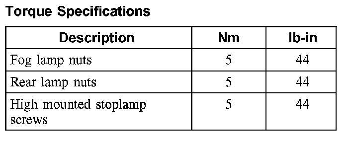 Torque Specifications: