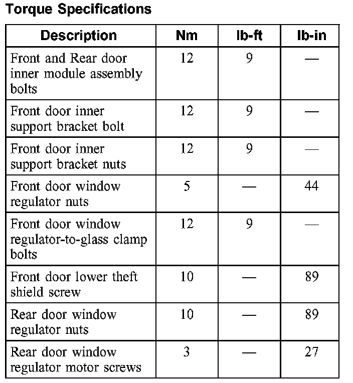 Torque Specifications:
