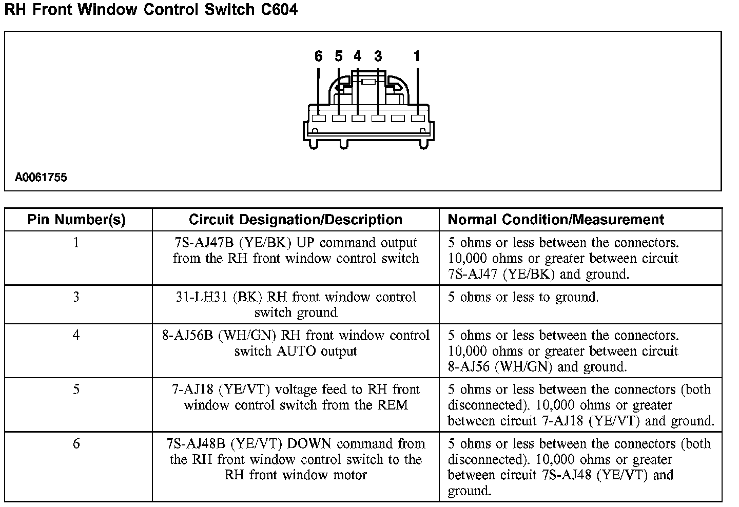 RH Front Window Control Switch C604: