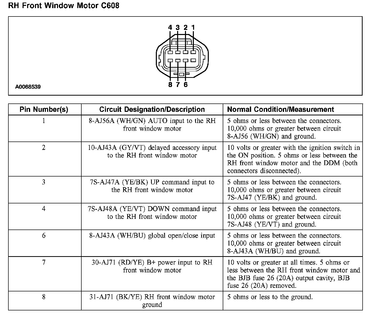RH Front Window Motor C608: