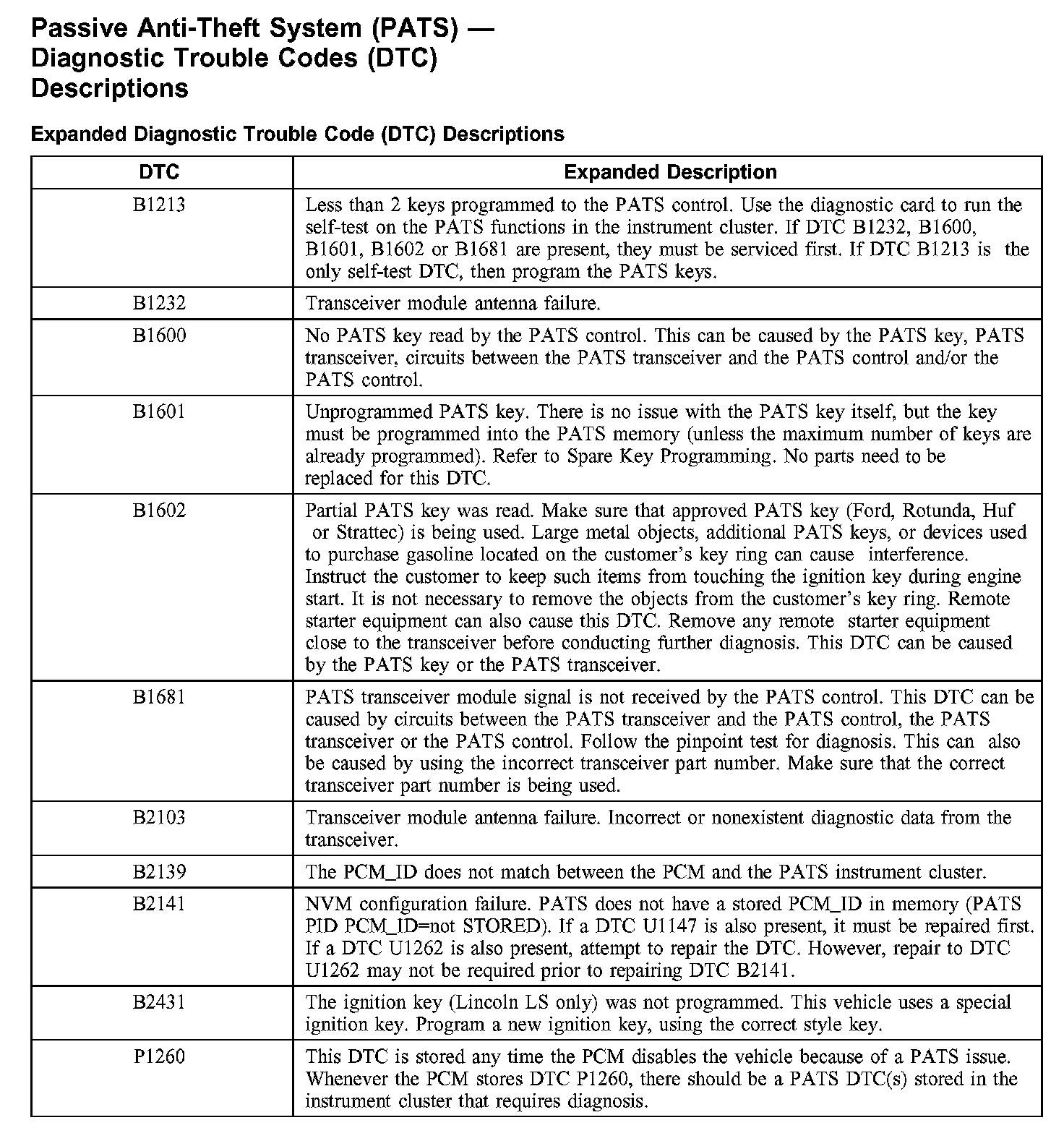 Diagnostic Trouble Code Descriptions