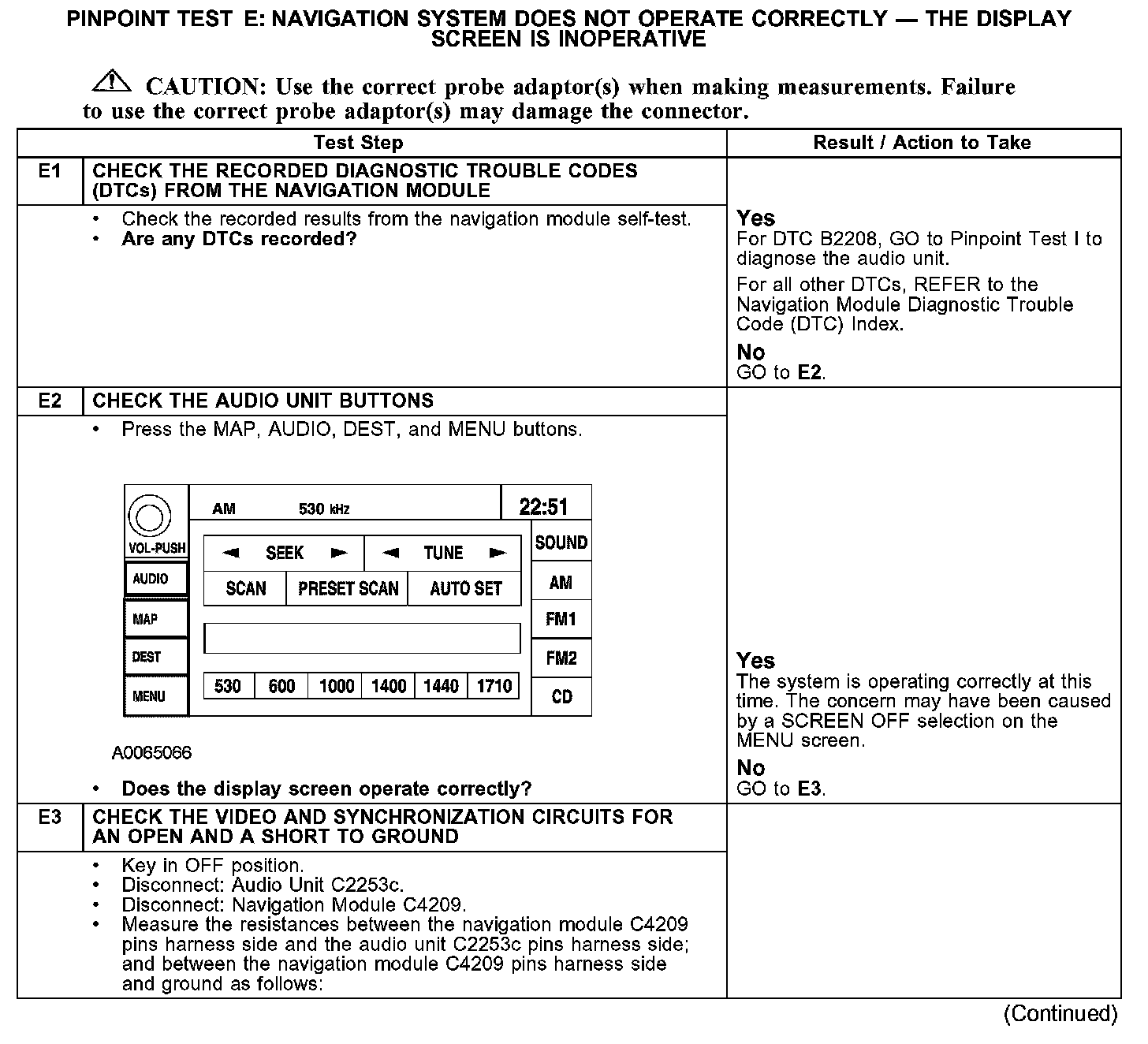 PINPOINT TEST E: NAVIGATION SYSTEM DOES NOT OPERATE CORRECTLY - THE DISPLAY SCREEN IS INOPERATIVEE1-E3: