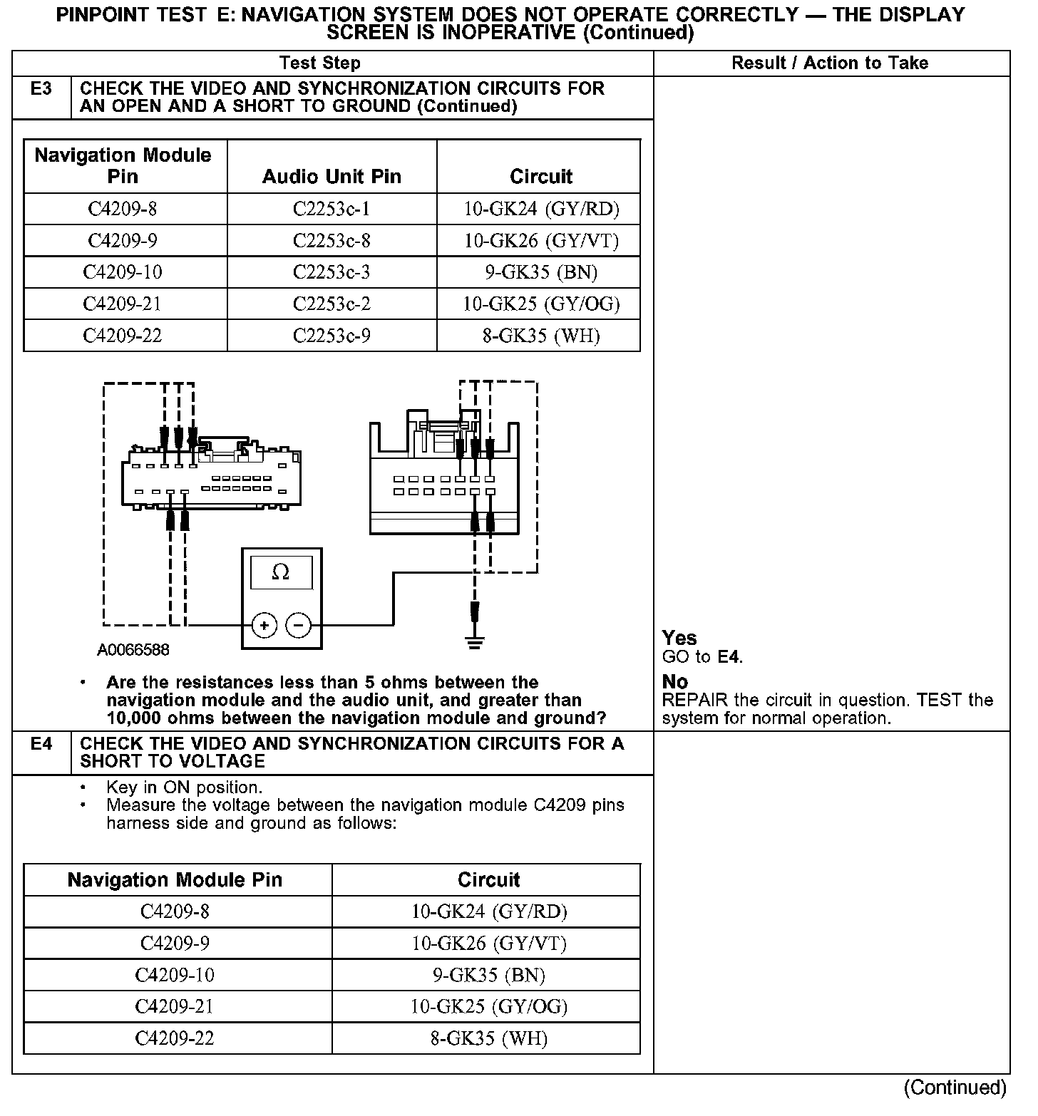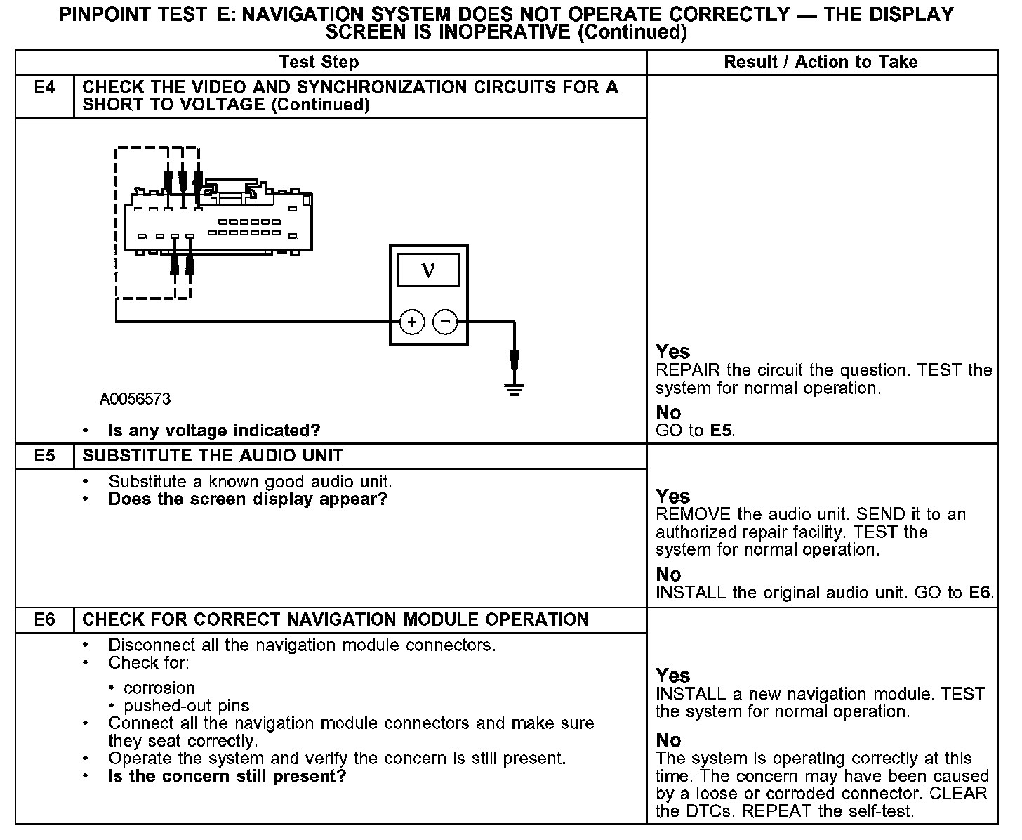 Test E: Navigation System Does Not Operate Correctly - The Display Screen Is Inoperative