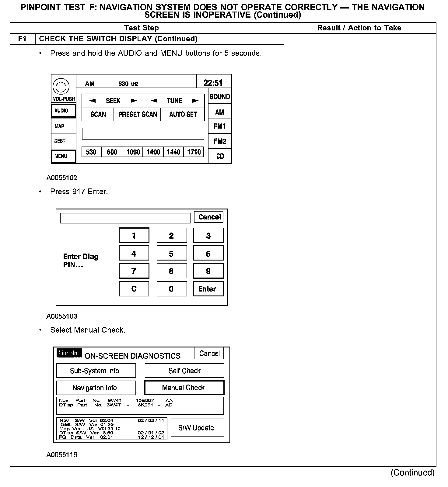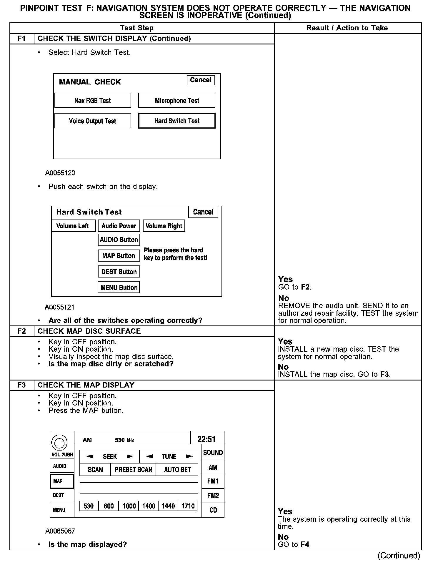 PINPOINT TEST F: NAVIGATION SYSTEM DOES NOT OPERATE CORRECTLY - THE NAVIGATION SCREEN IS INOPERATIVEF1: