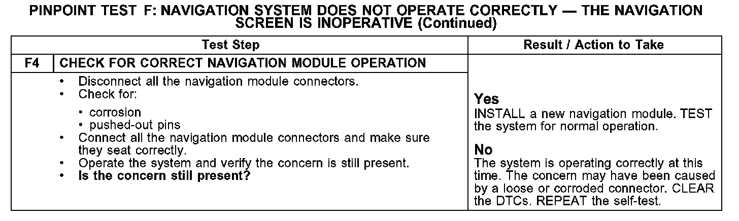 Test F: Navigation System Does Not Operate Correctly - The Navigation Screen Is Inoperative
