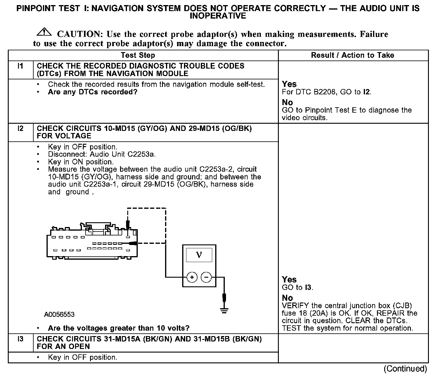 PINPOINT TEST I: NAVIGATION SYSTEM DOES NOT OPERATE CORRECTLY - THE AUDIO UNIT IS INOPERATIVEI1-I3: