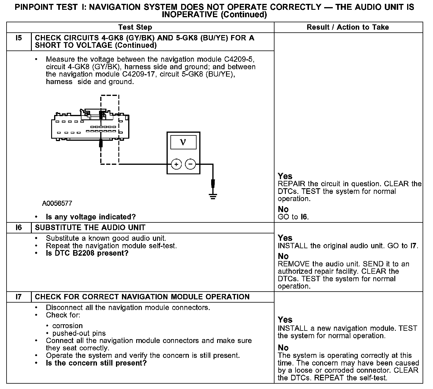 Test I: Navigation System Does Not Operate Correctly - The Audio Unit Is Inoperative
