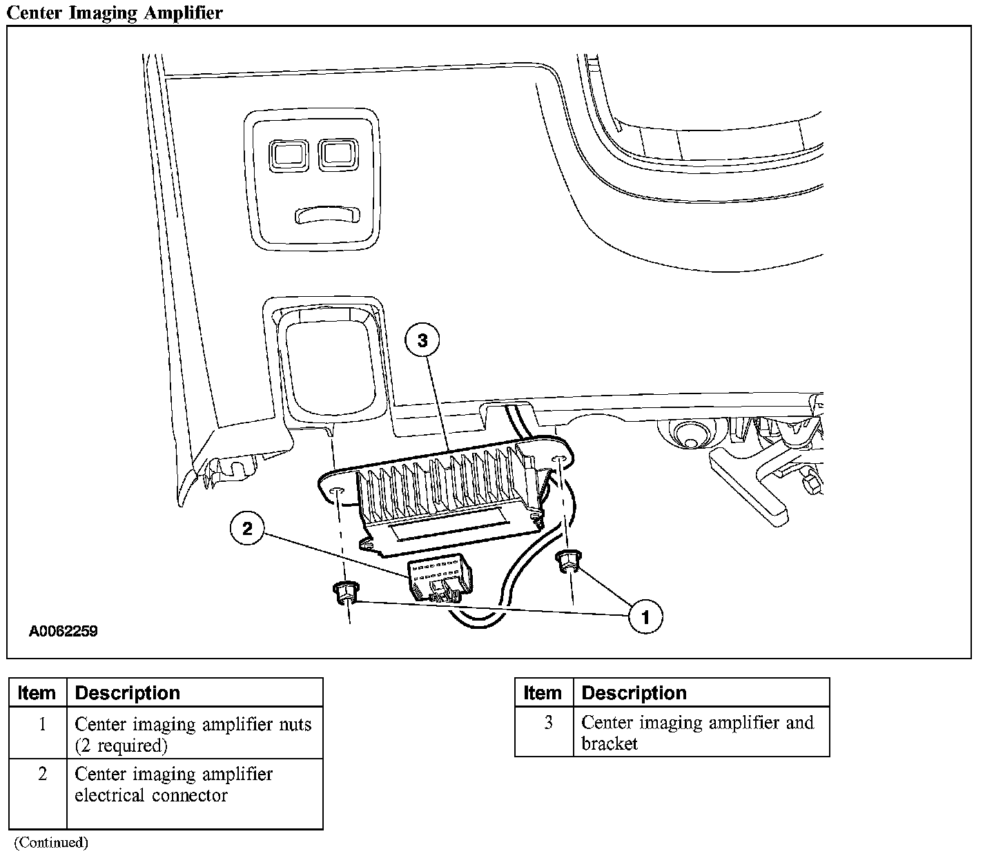 3. Remove the 2 center imaging amplifier nuts and the center imaging amplifier.