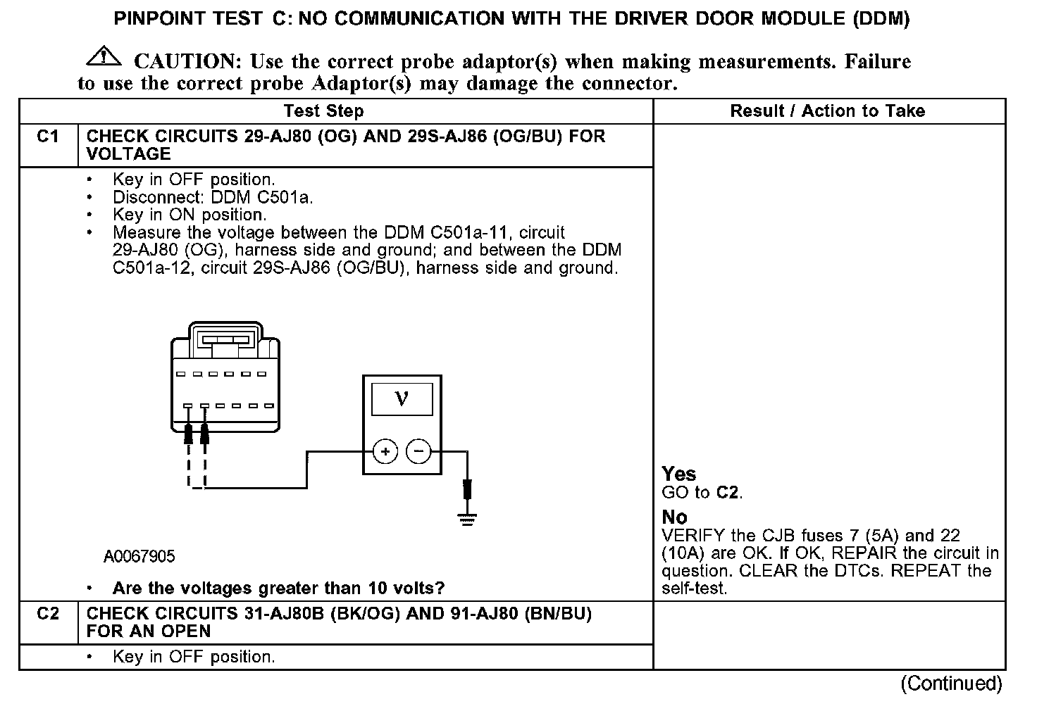 PINPOINT TEST C: NO COMMUNICATION WITH THE DRIVER DOOR MODULE (DDM)C1-C2: