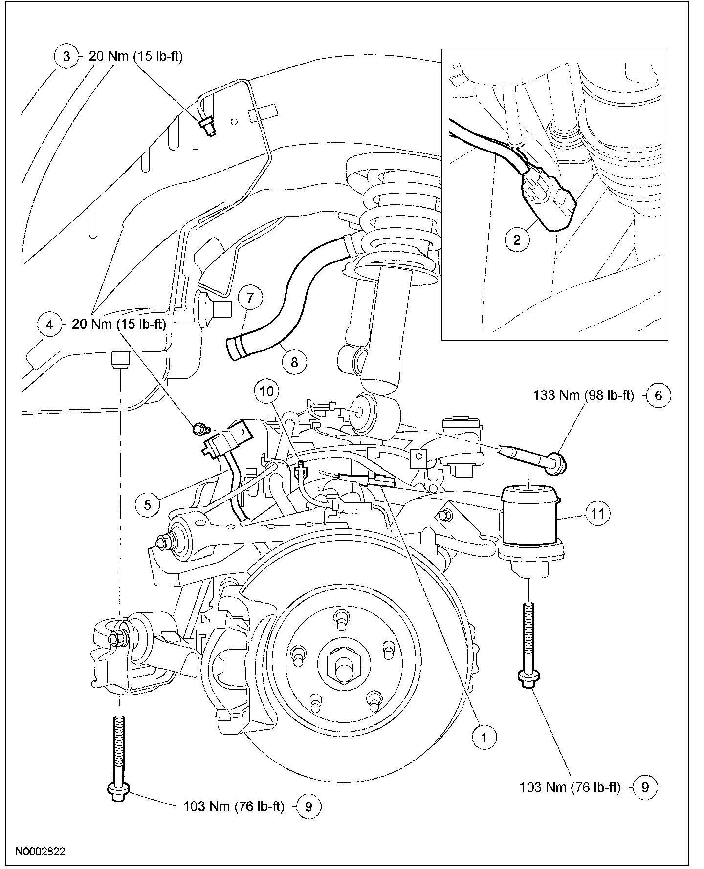 - If installing a new subframe and bushings assembly, transfer all the suspension components and perform a rear wheel alignment.