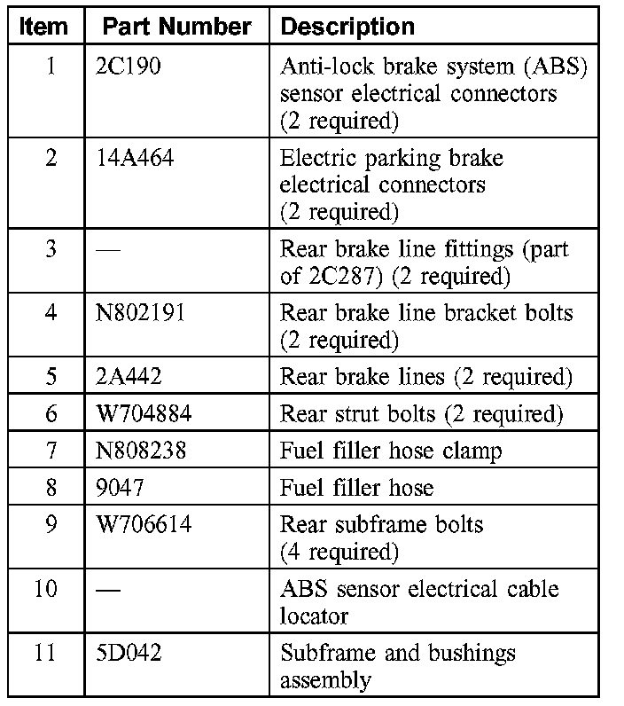3. NOTE: If a new rear subframe is to be installed, the differential and halfshafts must be removed prior to removal of the rear subframe. For all other procedures, the differential, halfshafts and rear subframe are to be removed as an assembly.