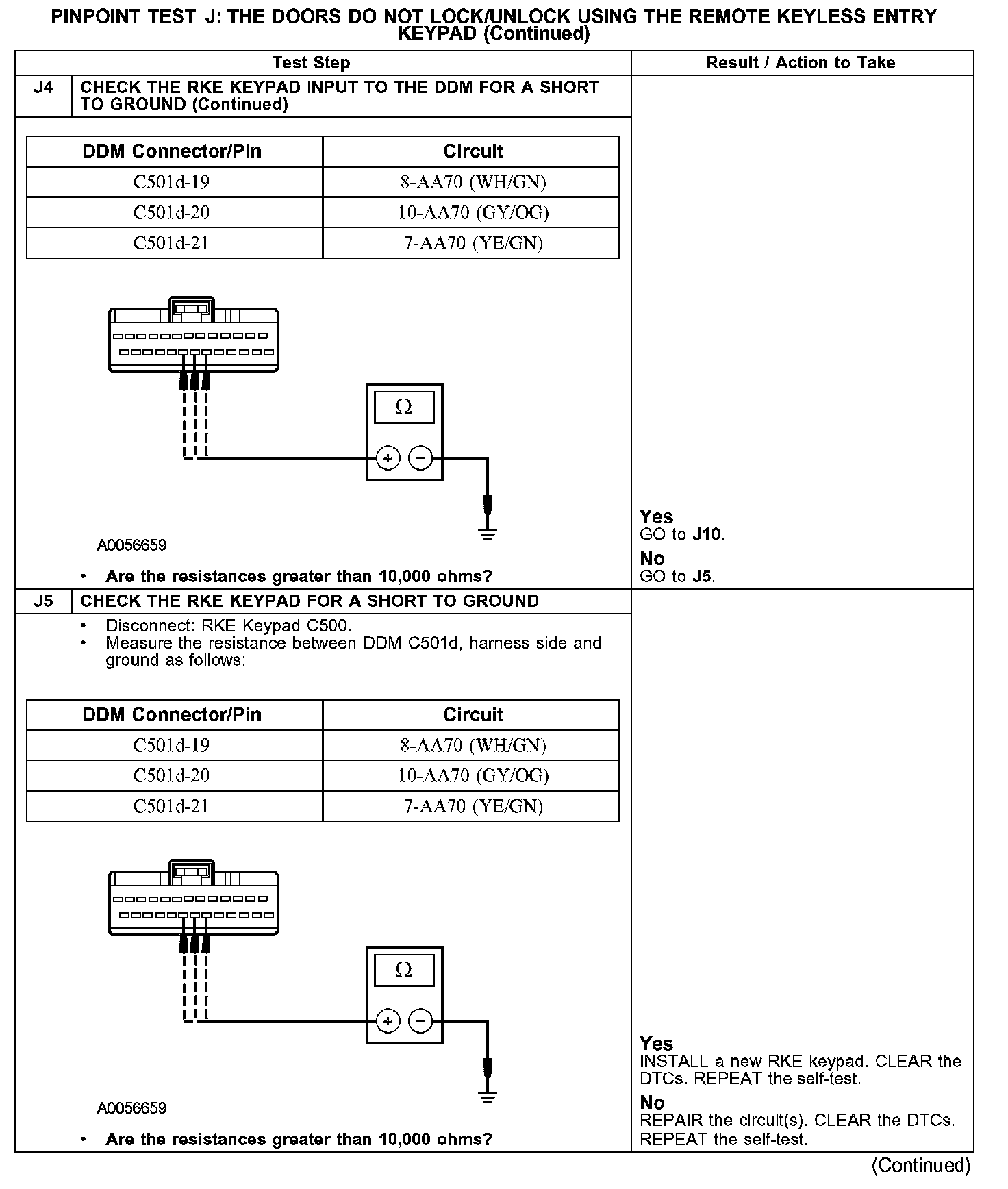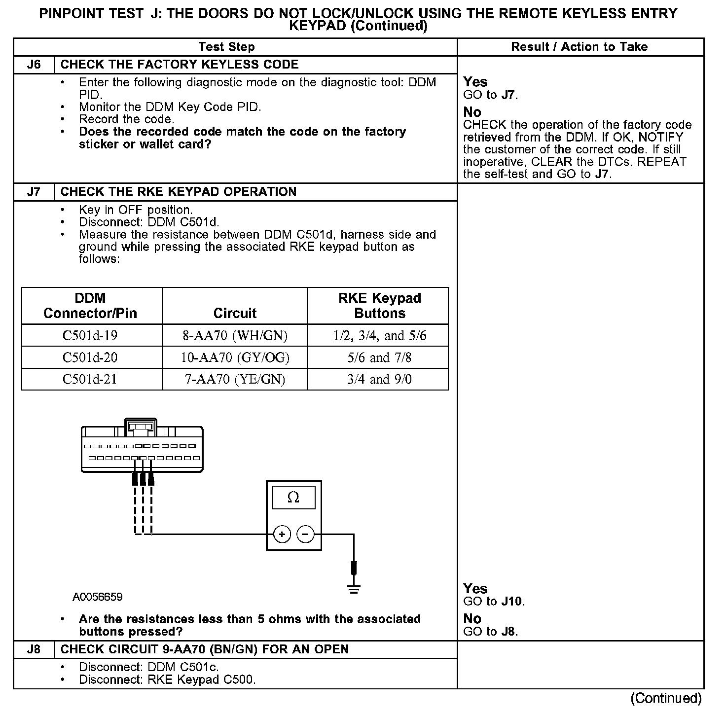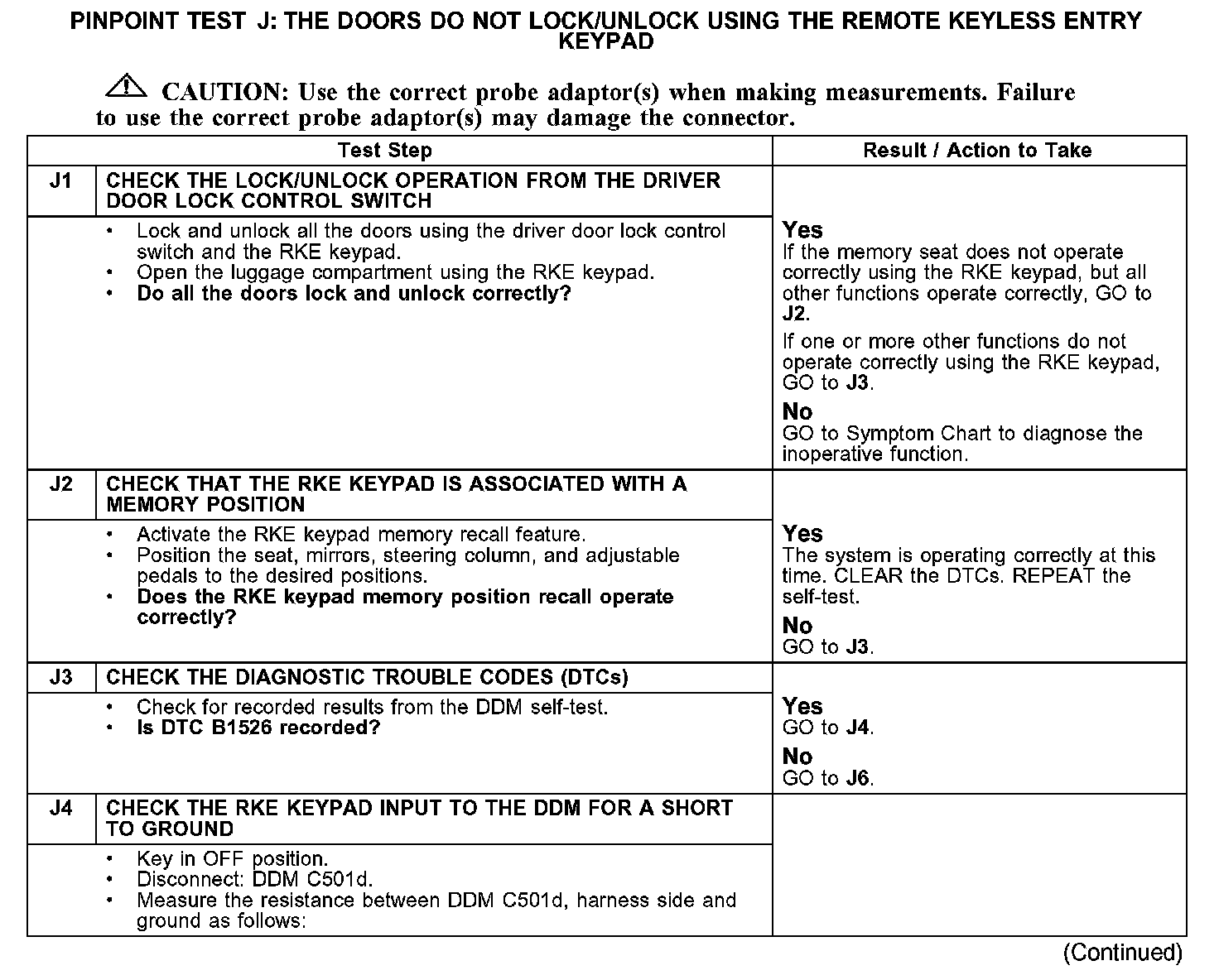 PINPOINT TEST J: THE DOORS DO NOT LOCK/UNLOCK USING THE REMOTE KEYLESS ENTRY KEYPADJ1-J4: