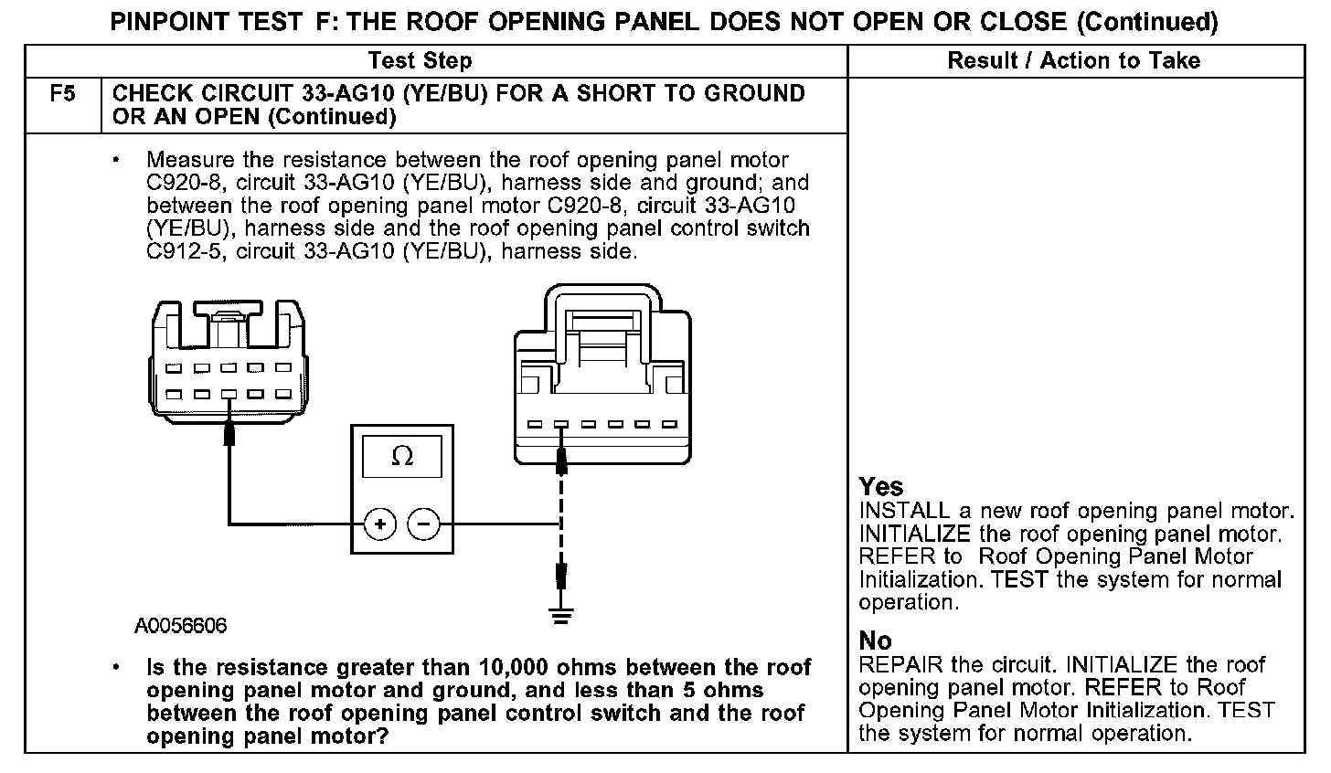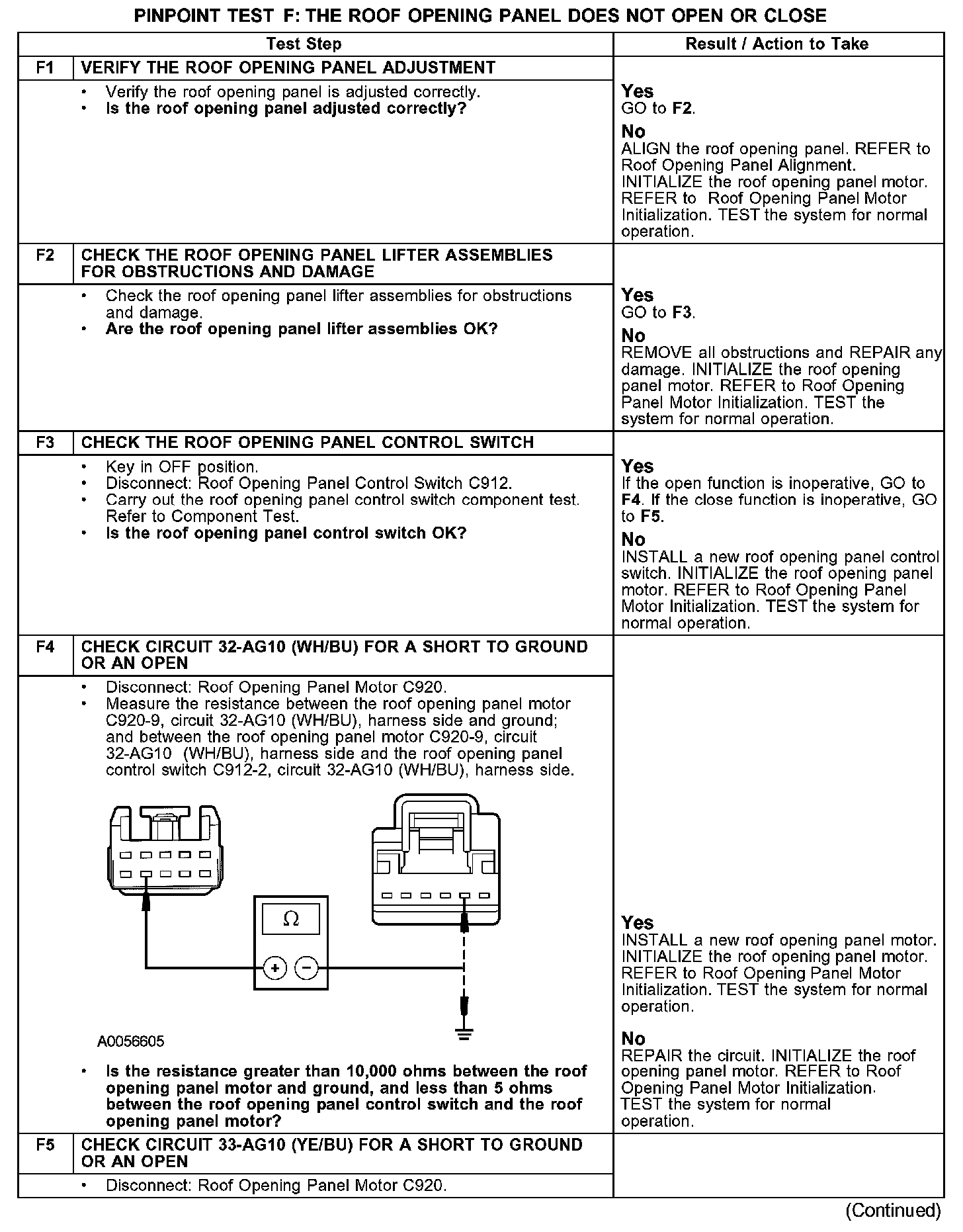 PINPOINT TEST F: THE ROOF OPENING PANEL DOES NOT OPEN OR CLOSEF1-F5: