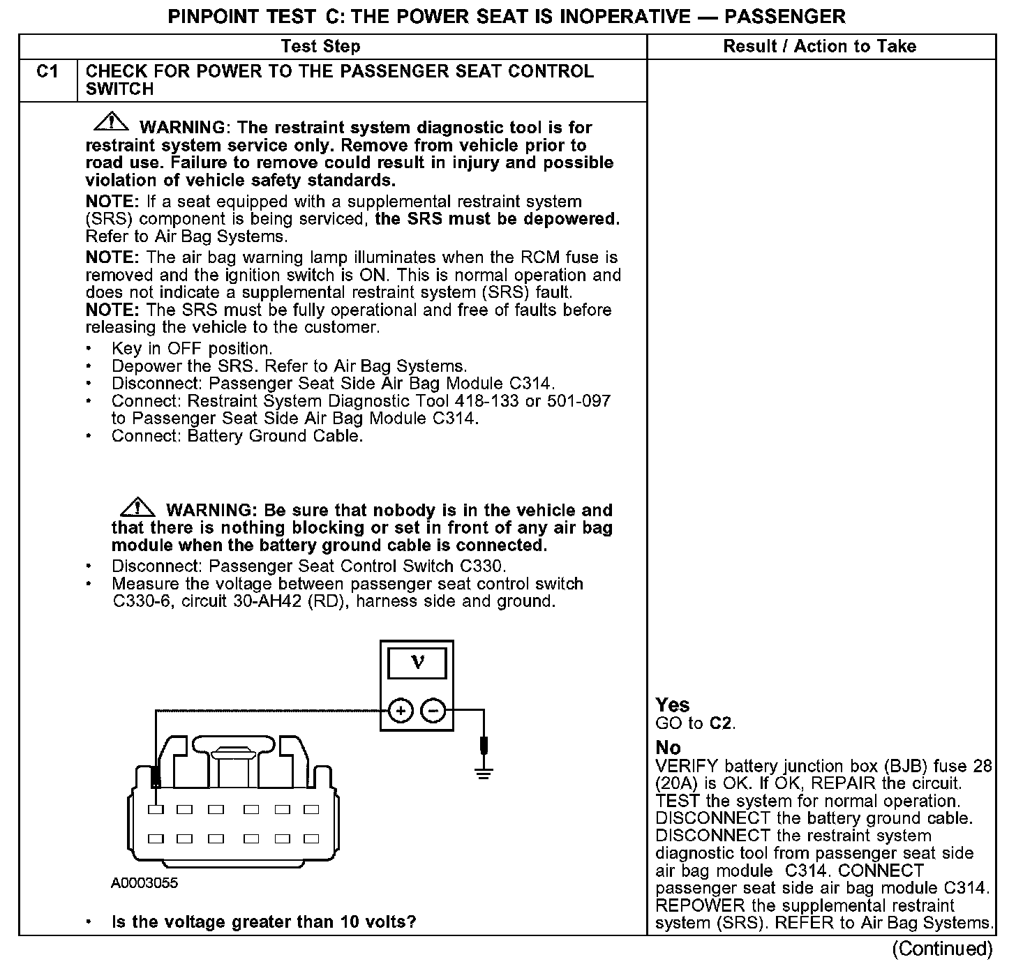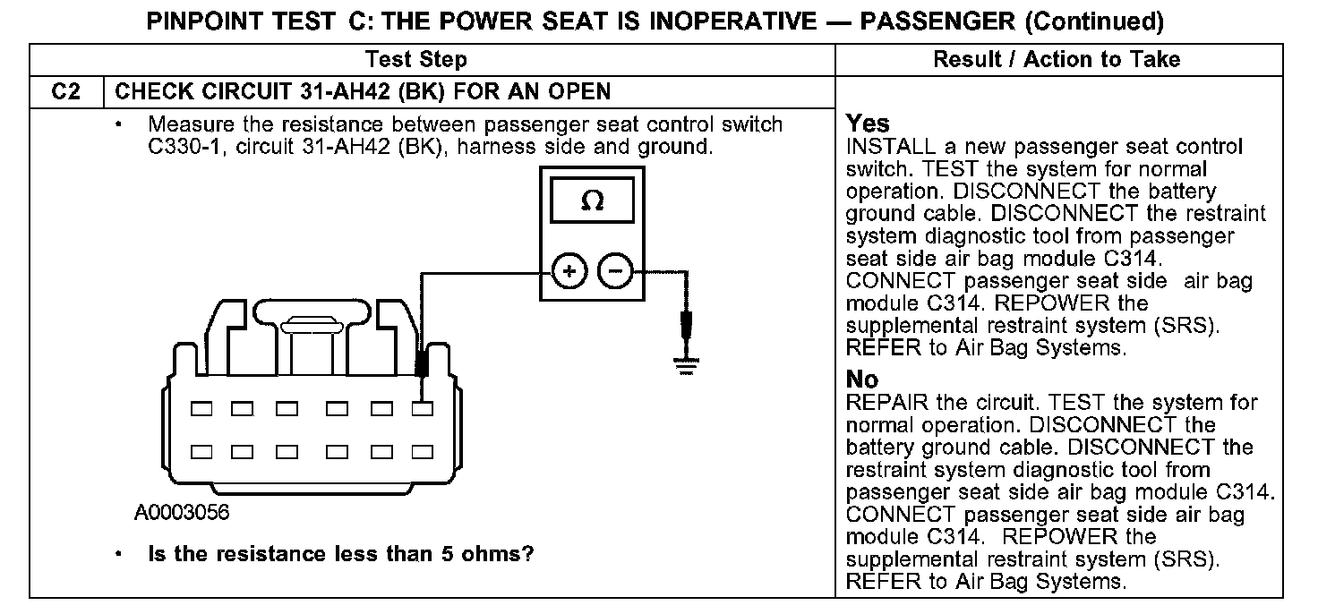 PINPOINT TEST C: THE POWER SEAT IS INOPERATIVE - PASSENGERC1: