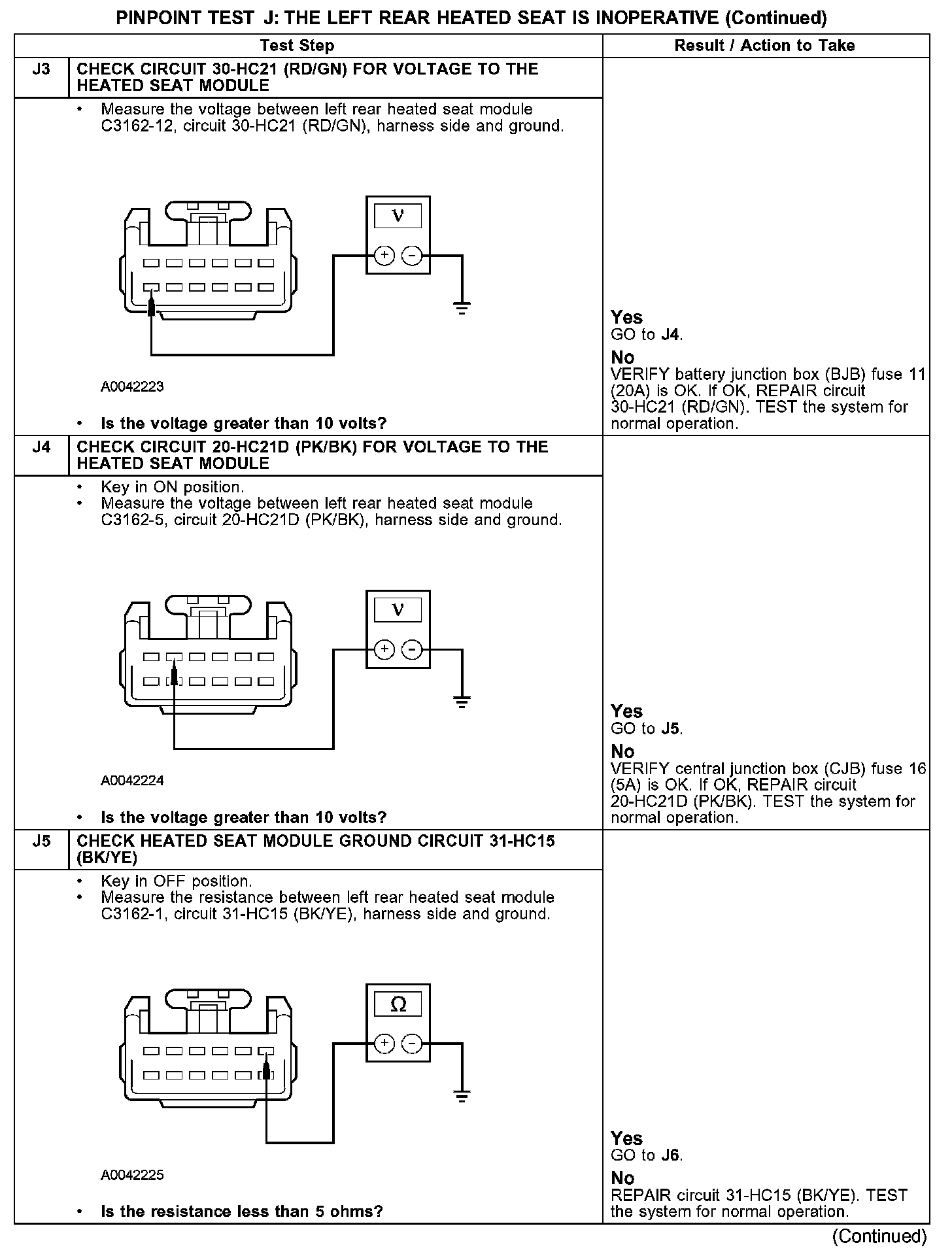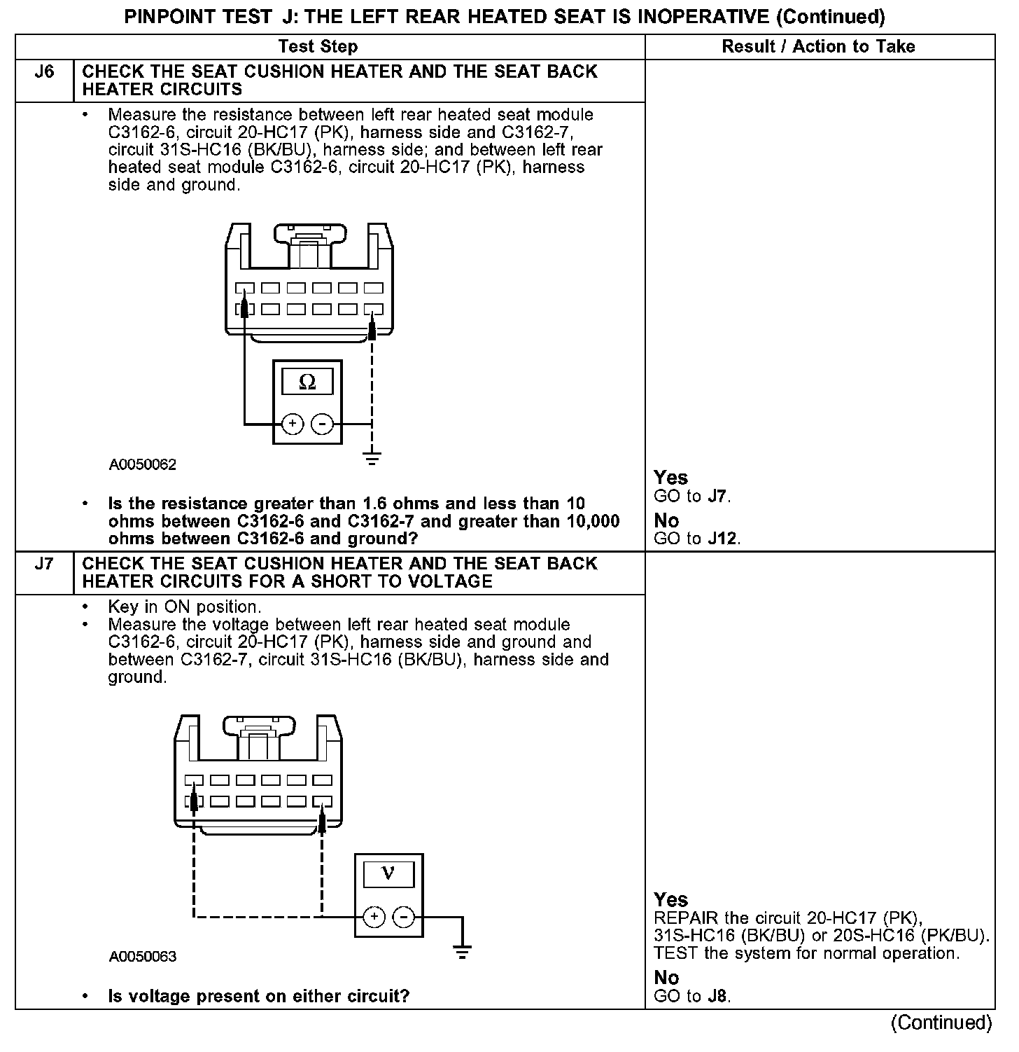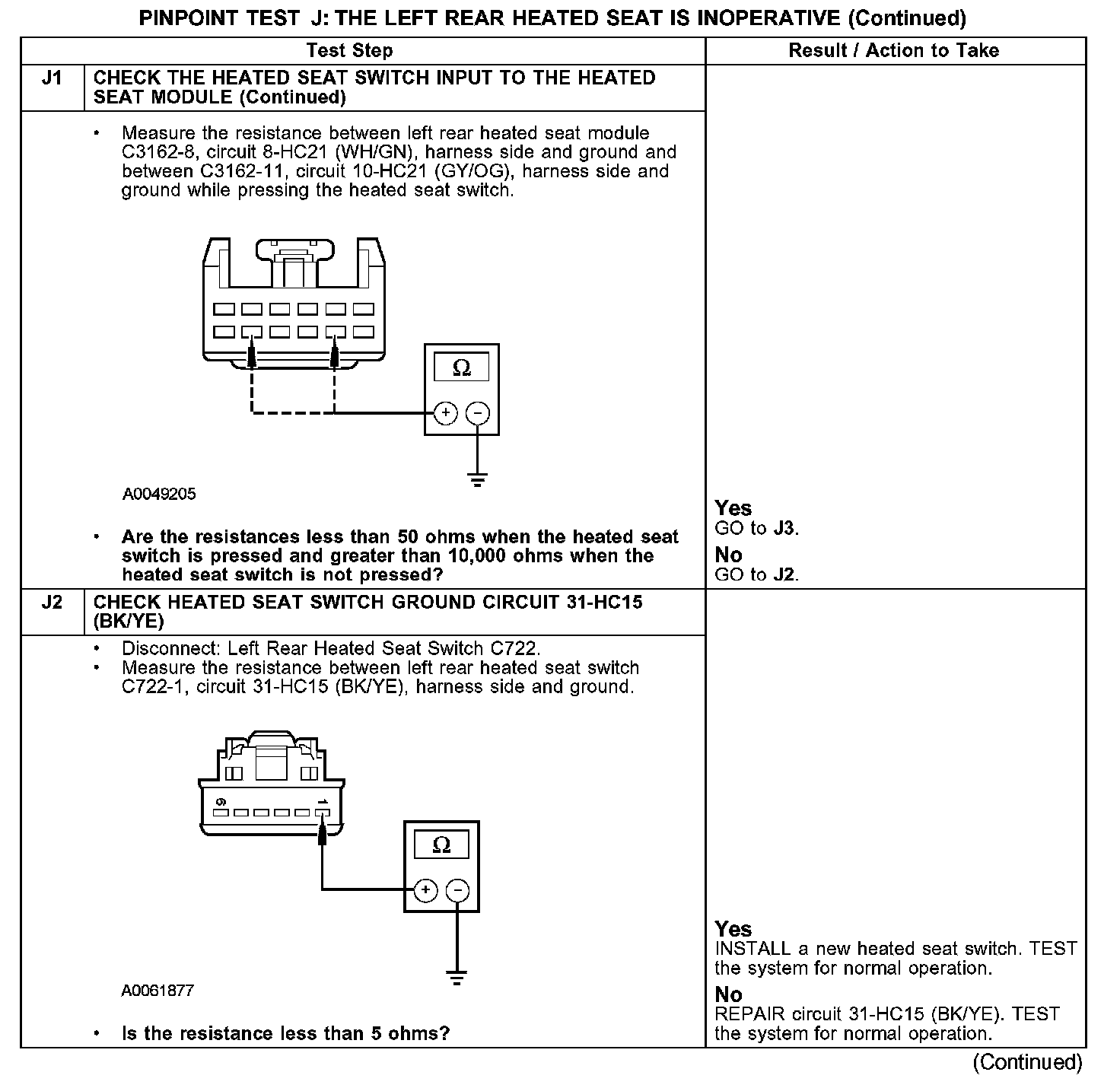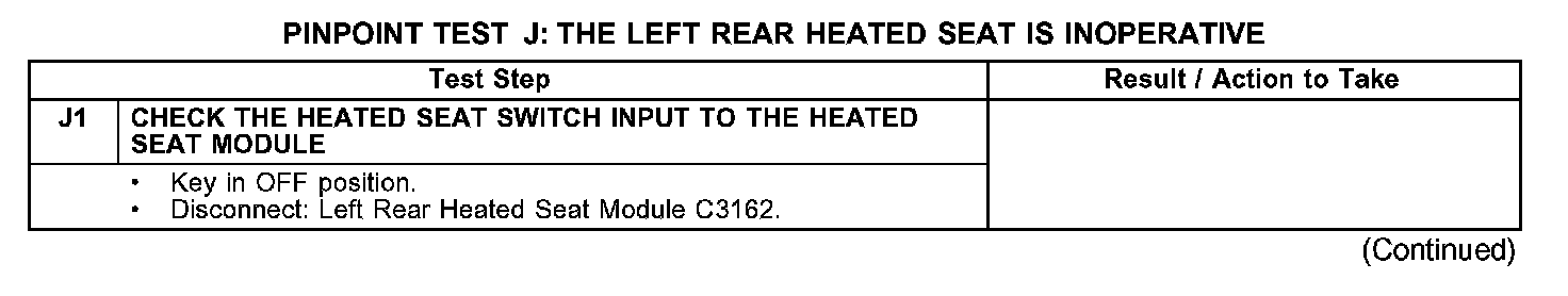 PINPOINT TEST J: THE LEFT REAR HEATED SEAT IS INOPERATIVEJ1: