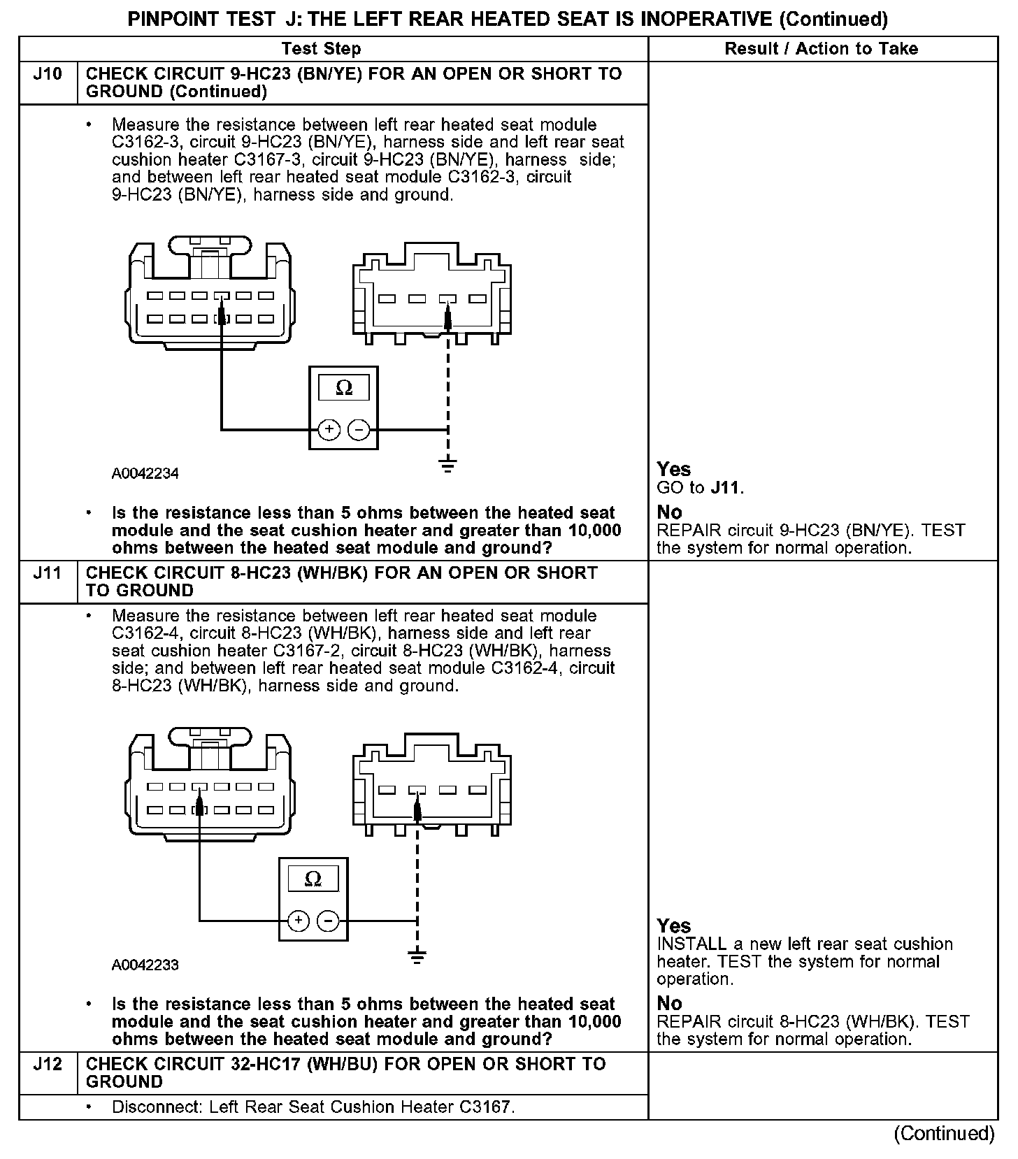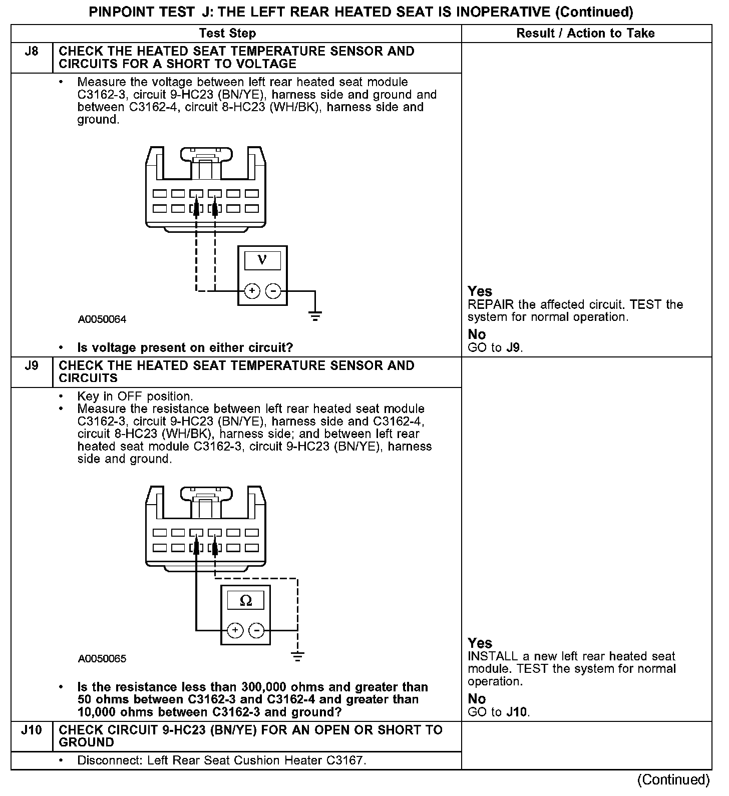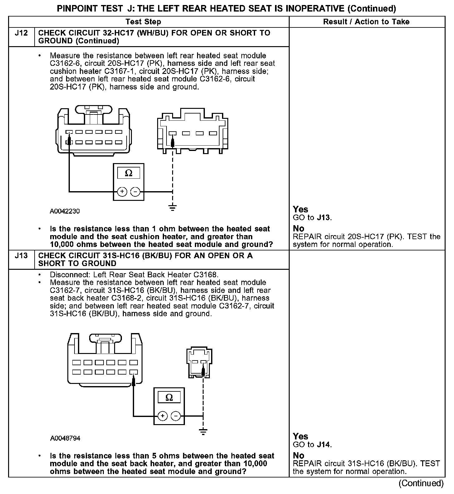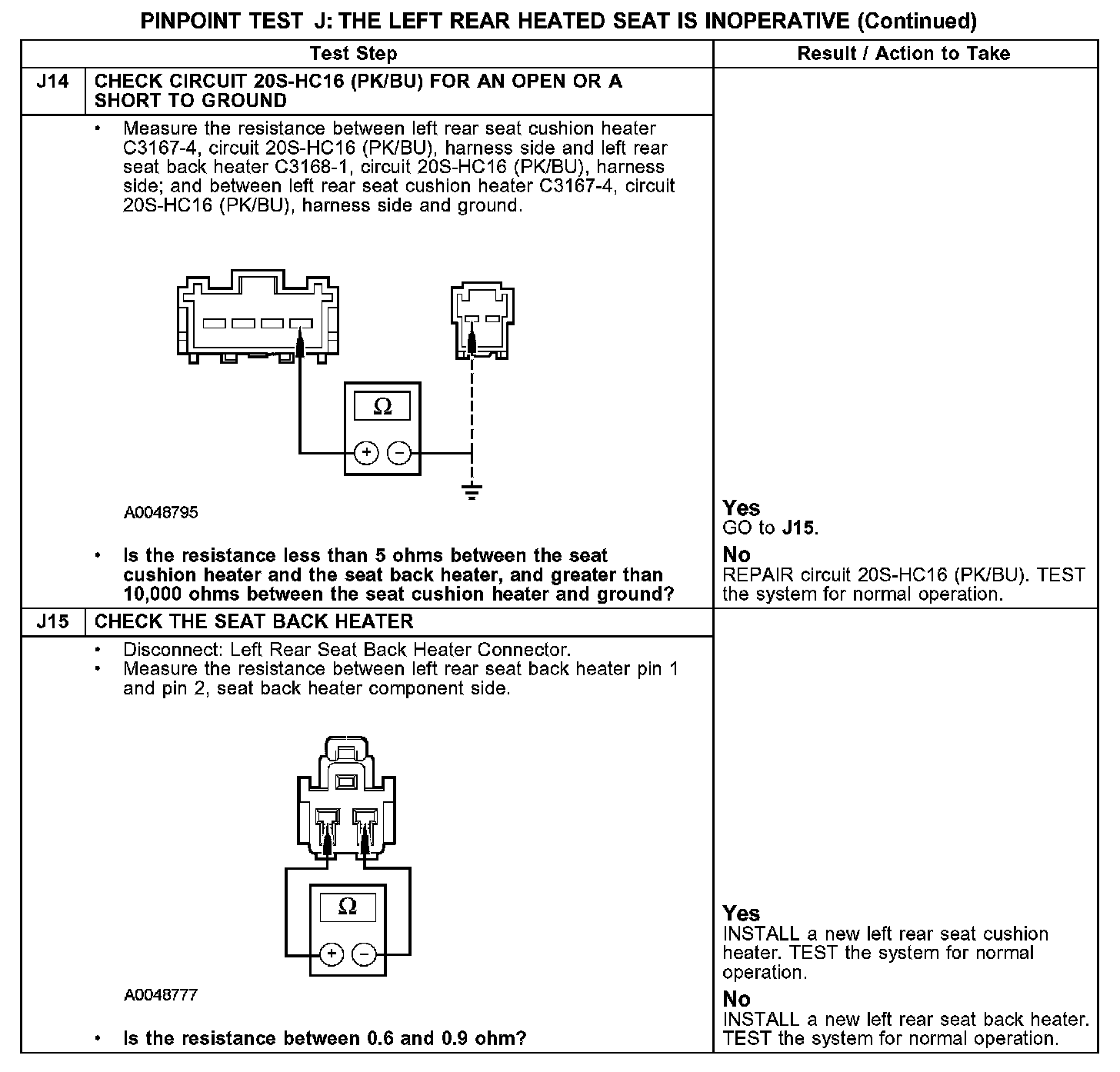 PINPOINT TEST J: THE LEFT REAR HEATED SEAT IS INOPERATIVEJ1: