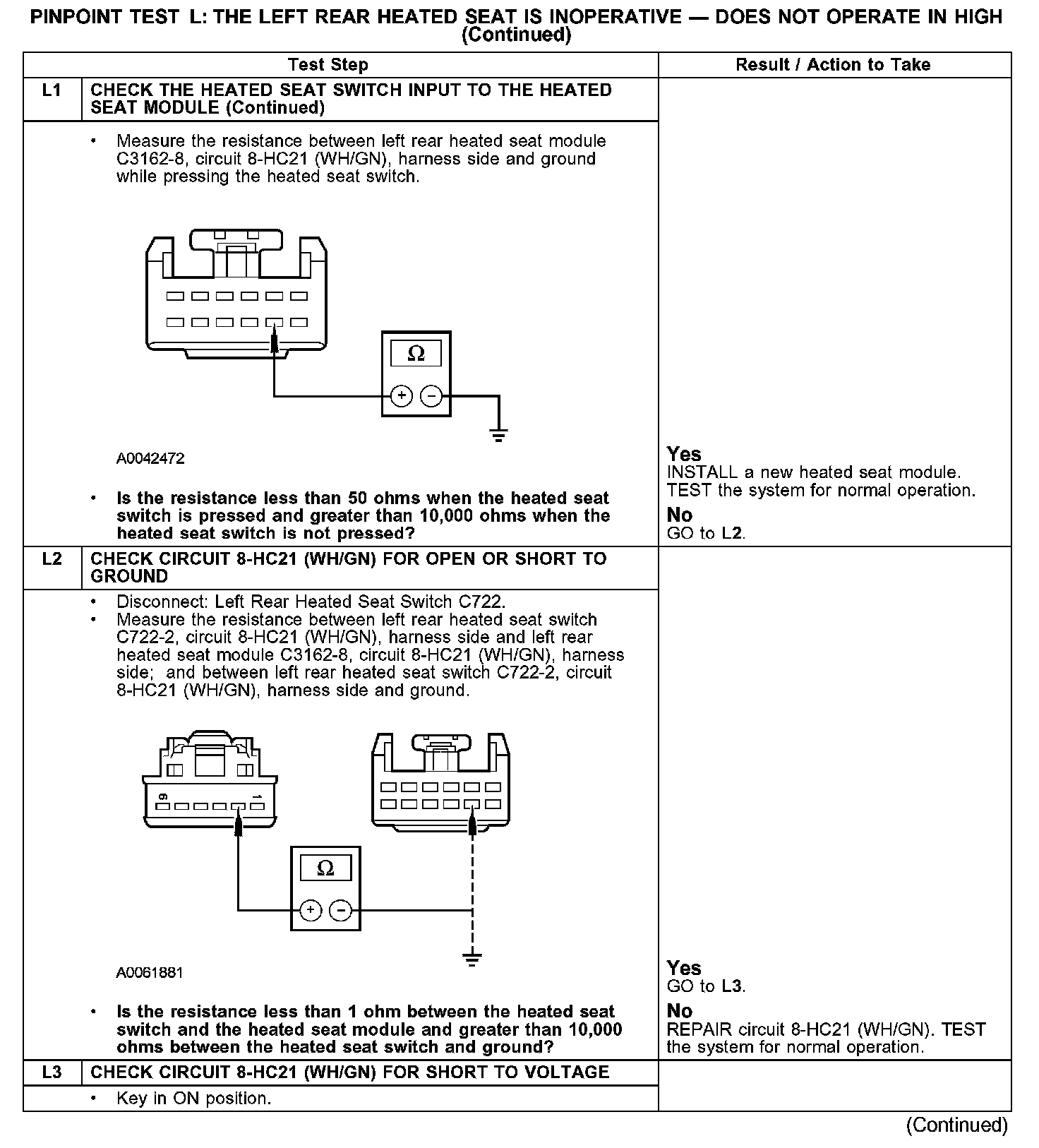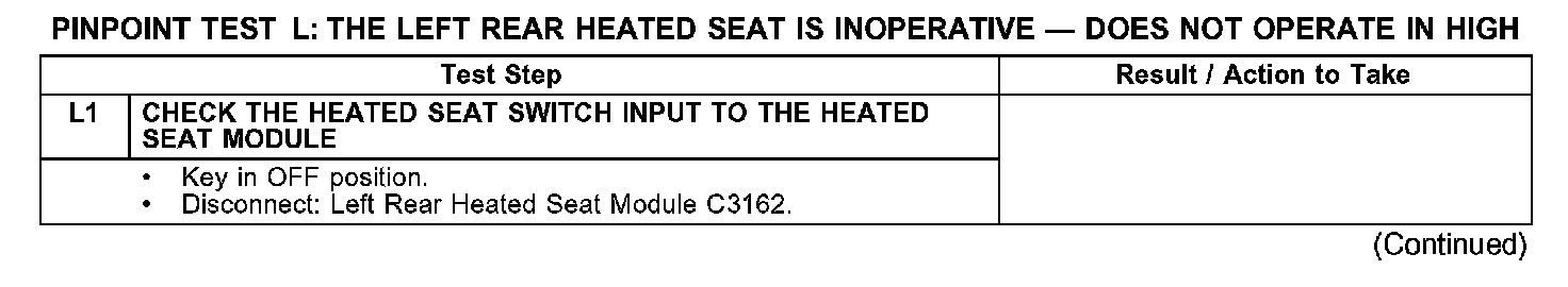 Test L: The Left Rear Heated Seat Is Inoperative - Does Not Operate In High