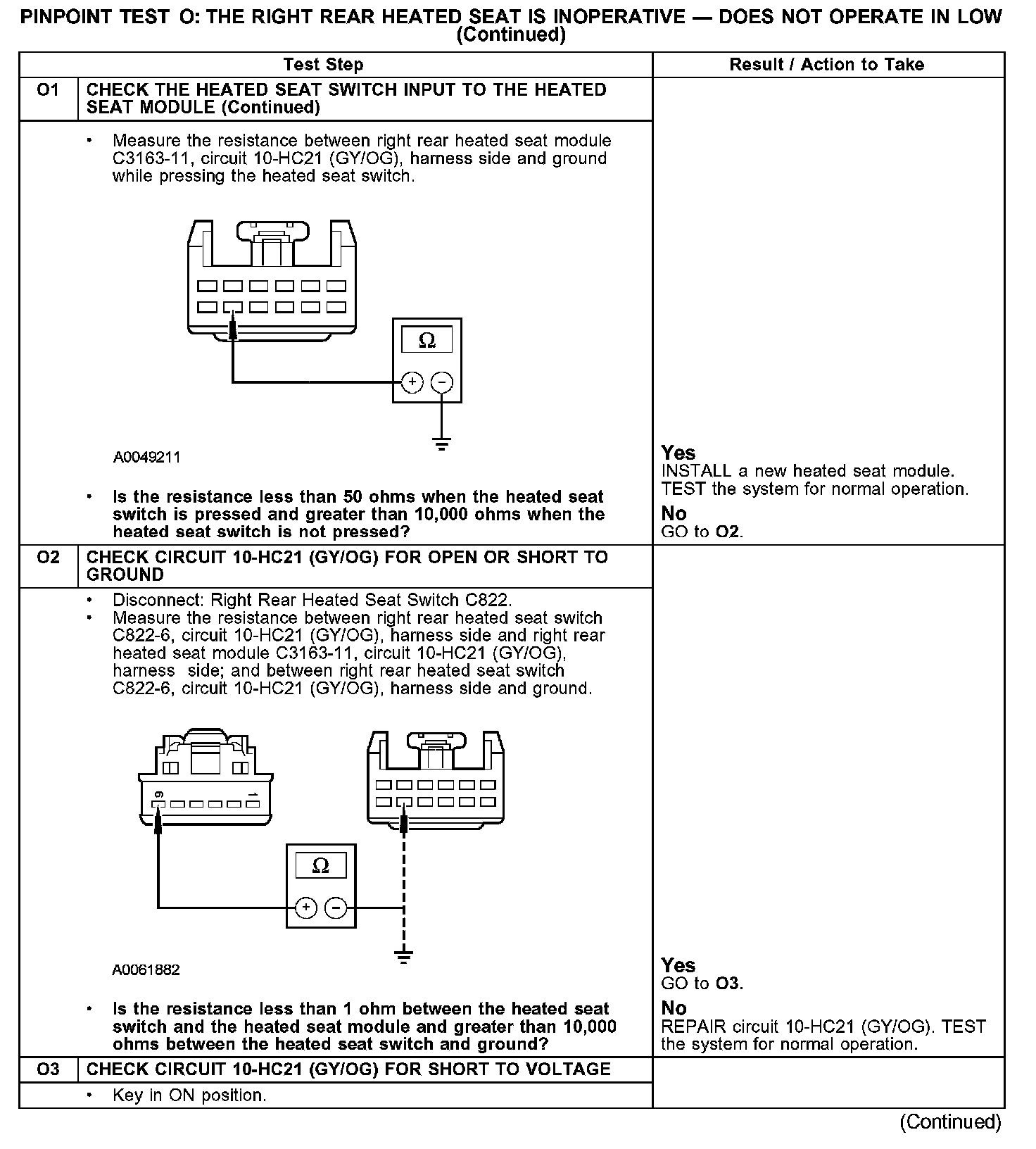 Test O: The Right Rear Heated Seat Is Inoperative - Does Not Operate In Low