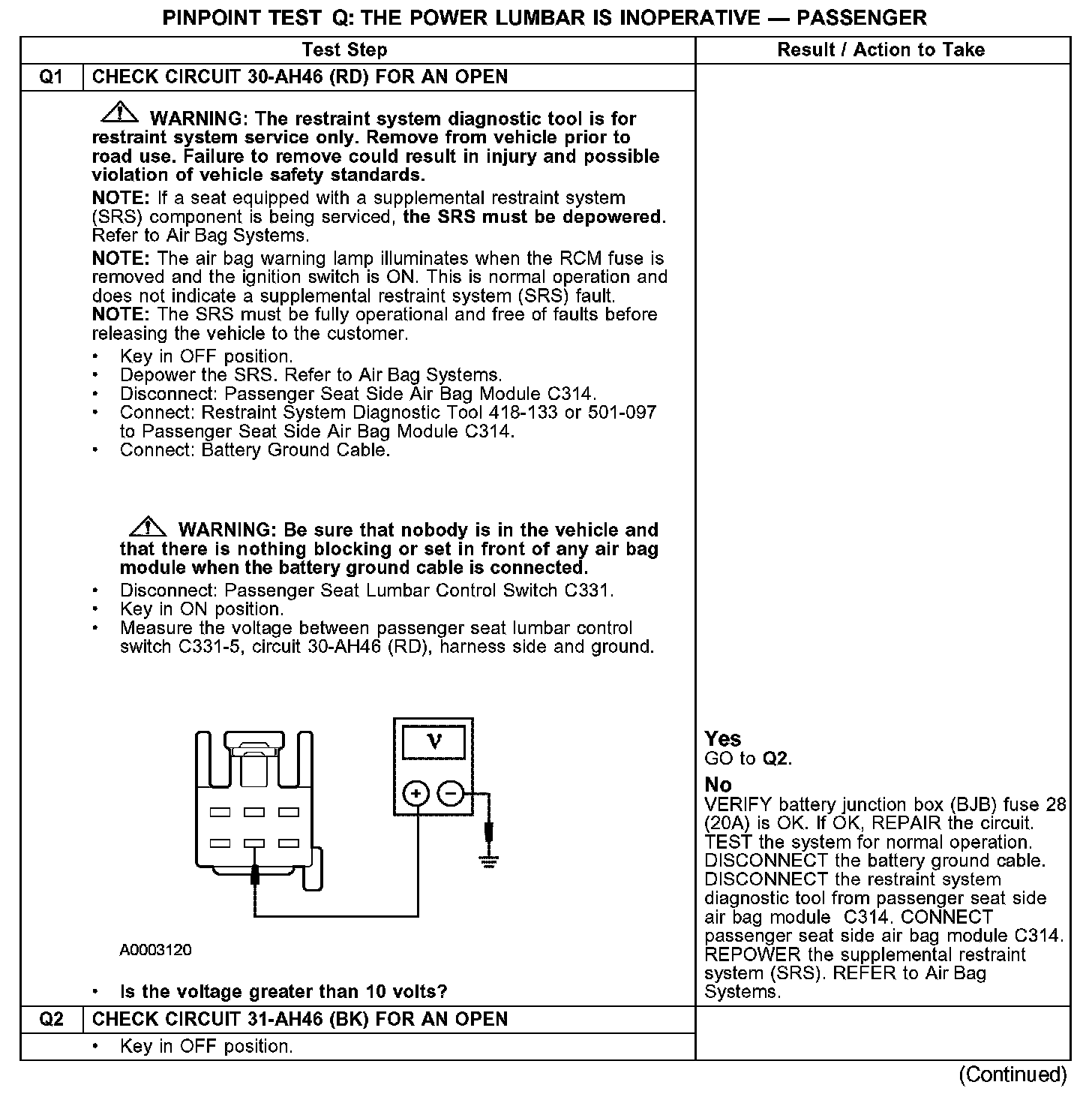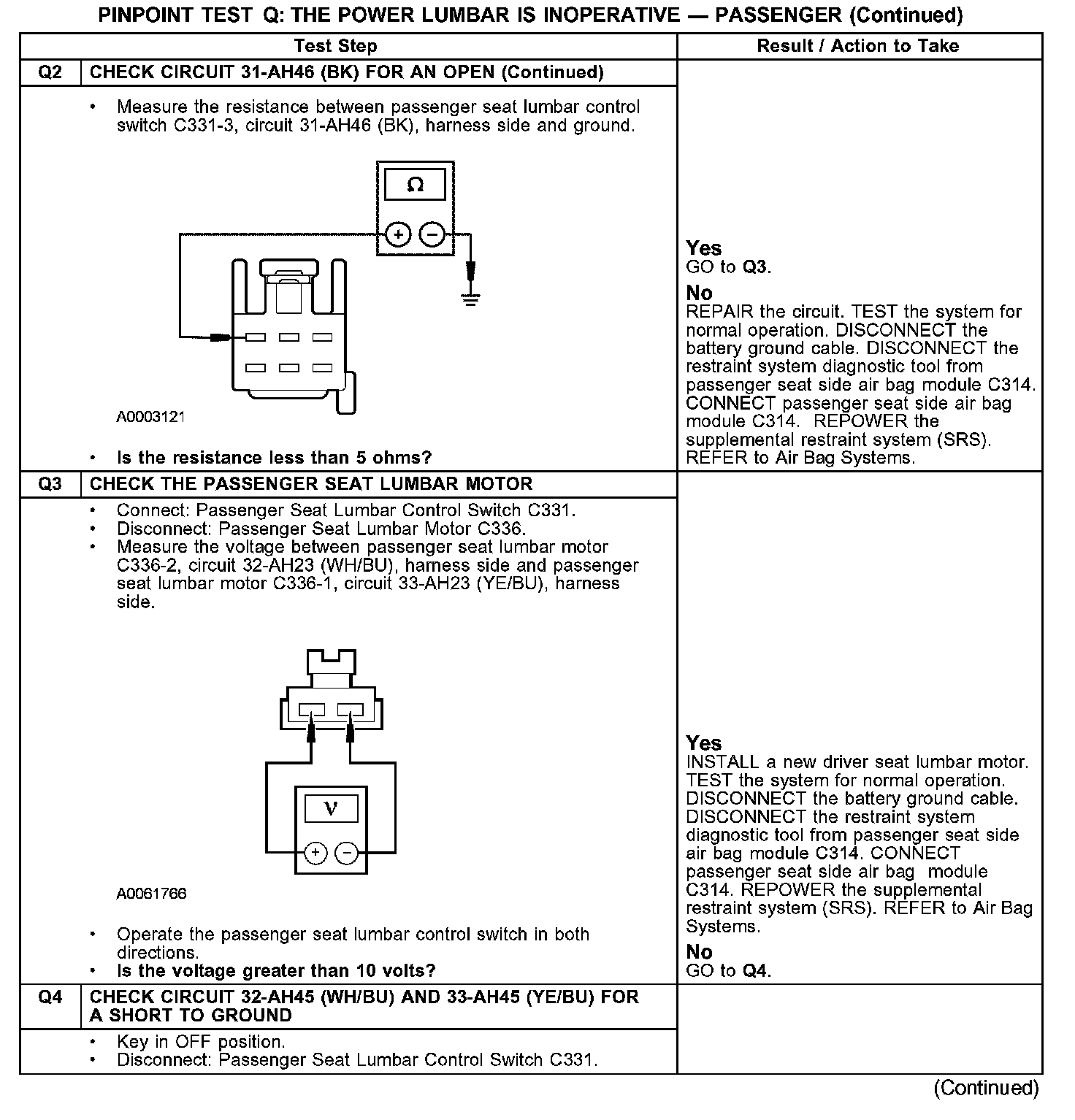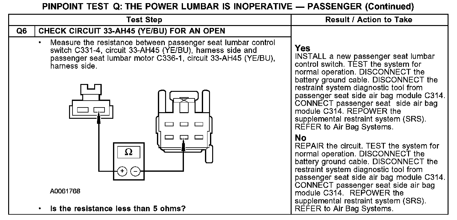 PINPOINT TEST Q: THE POWER LUMBAR IS INOPERATIVE - PASSENGERQ1-Q2: