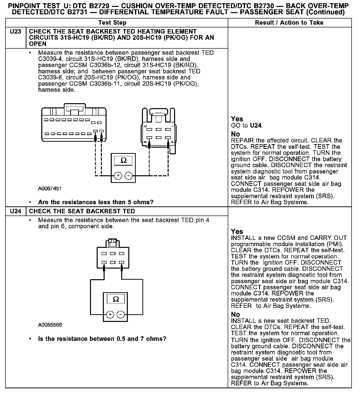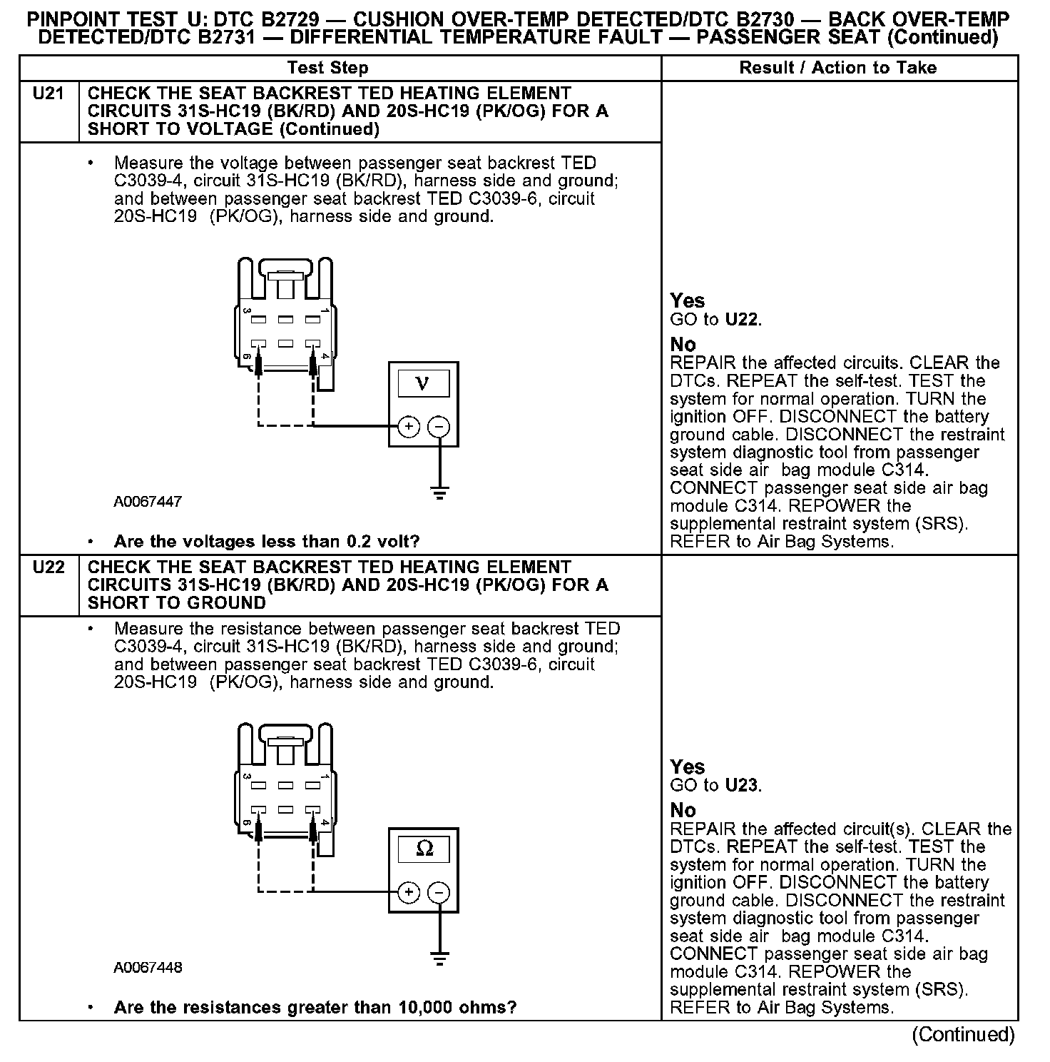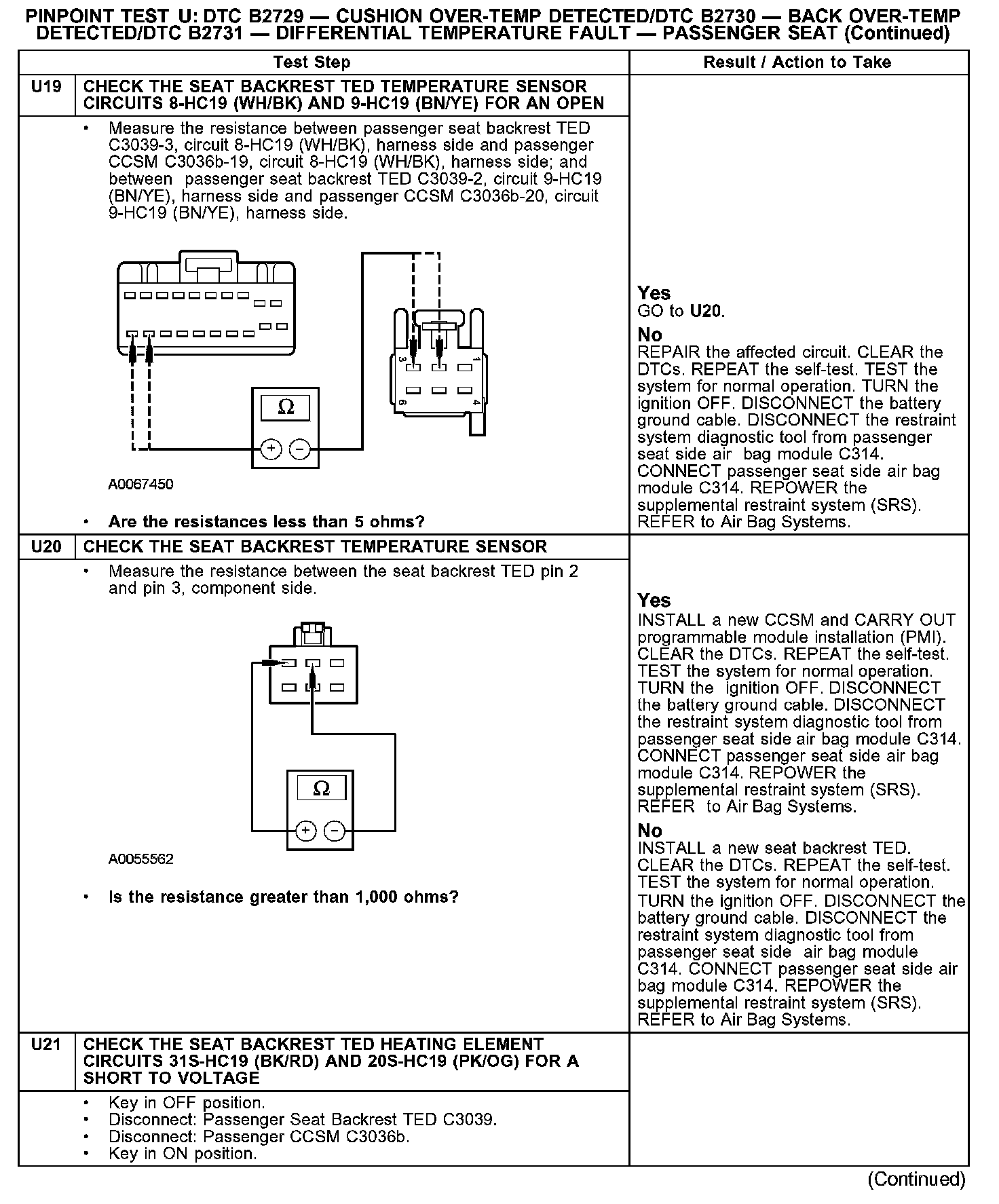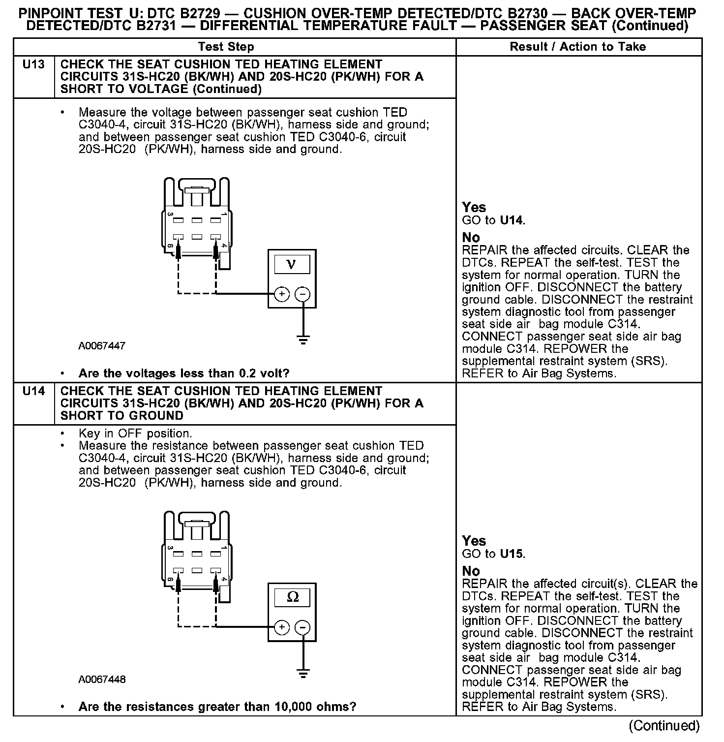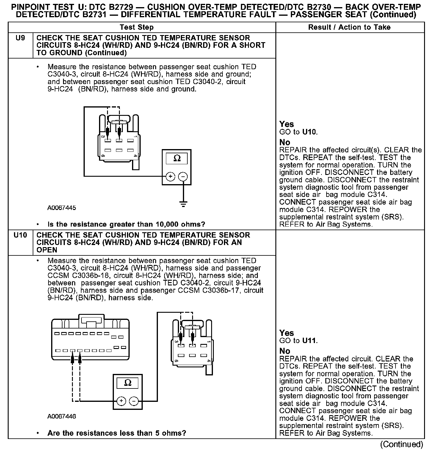PINPOINT TEST U: DTC B2729 - CUSHION OVER-TEMP DETECTED/DTC B2730 - BACK OVER-TEMP DETECTED/DTC B2731 - DIFFERENTIAL TEMPERATURE FAULT - PASSENGER SEATU1: