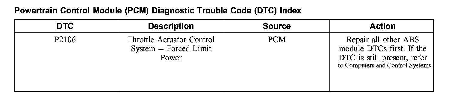Powertrain Control Module (PCM) Diagnostic Trouble Code (DTC) Index
