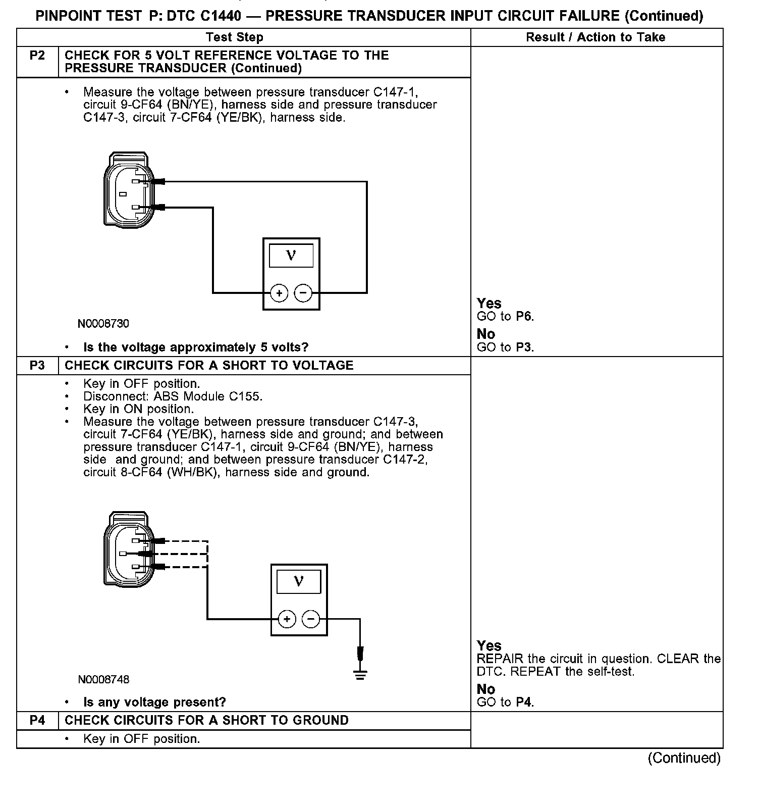 Test P: DTC C1440 - Pressure Transducer Input Circuit Failure