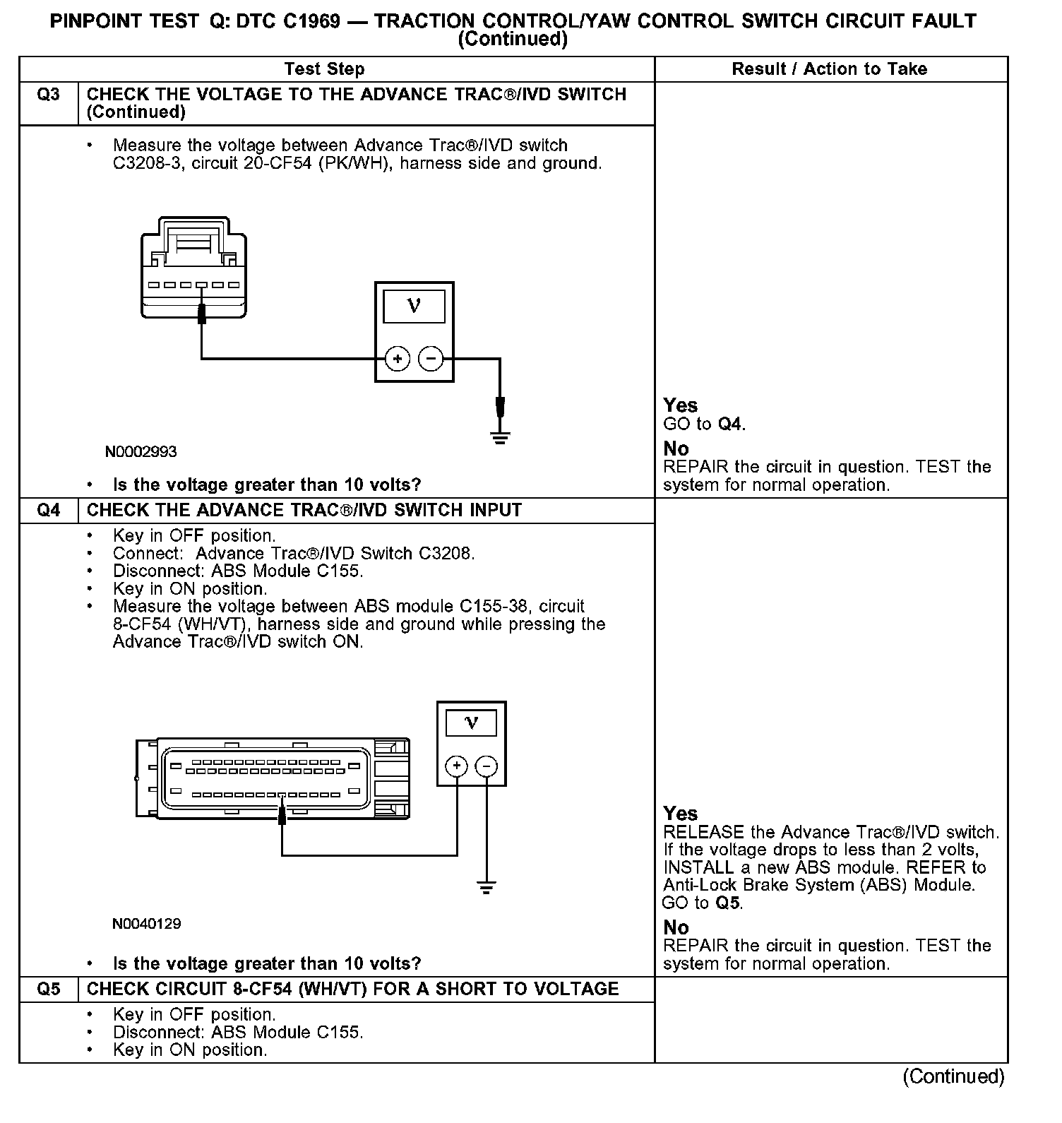 Pinpoint Test Q: DTC C1969 - Traction Control/Yaw Rate Control Switch CircuitNormal Operation