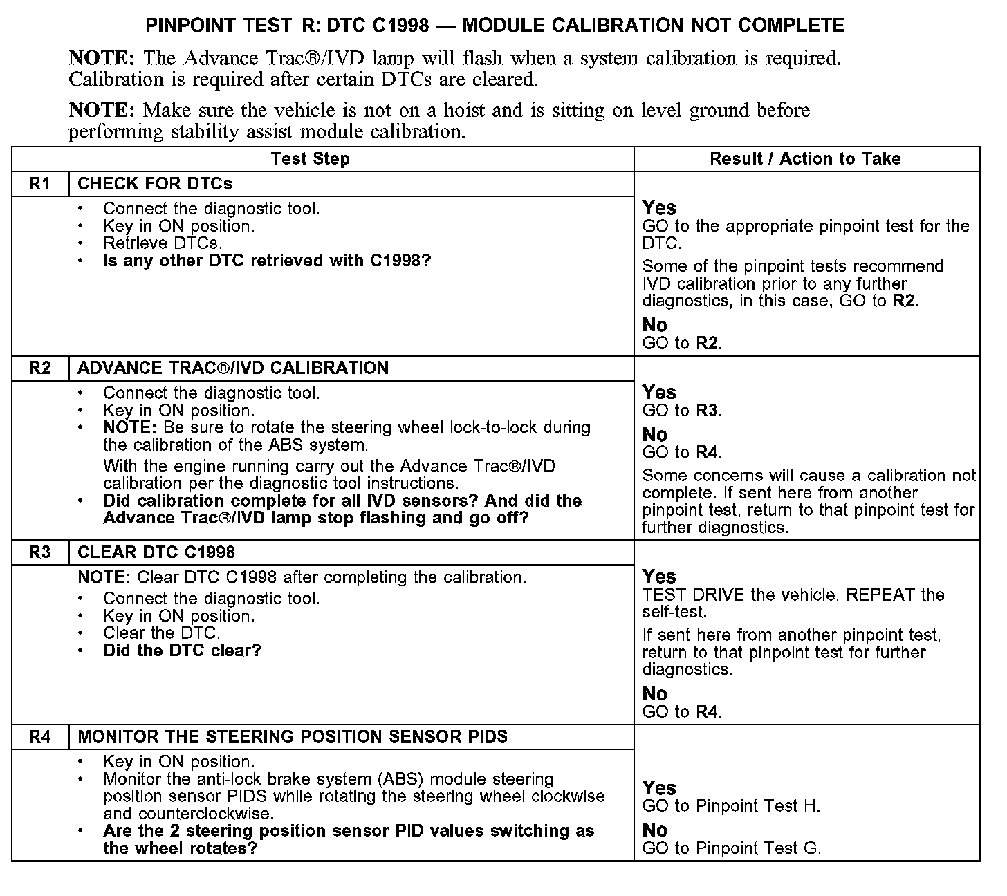 Test R: DTC C1998 - Module Calibration Not Complete