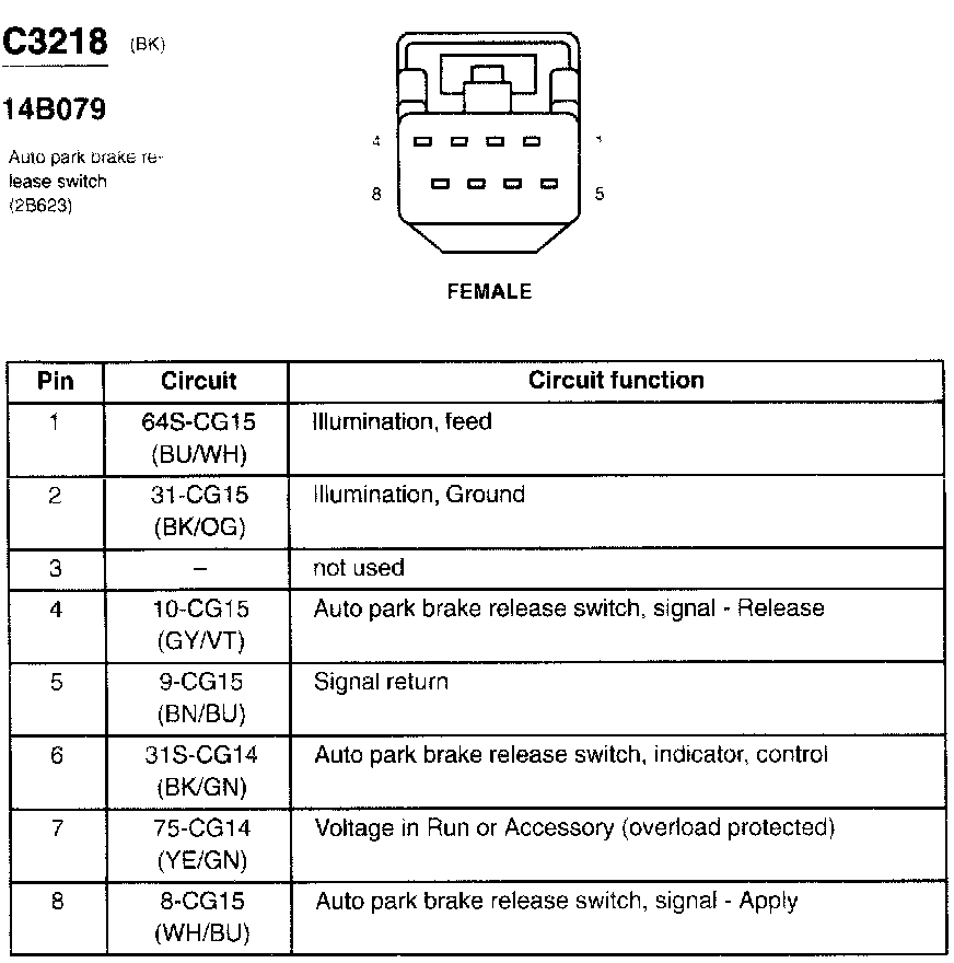 Parking Brake Release Switch: Diagrams