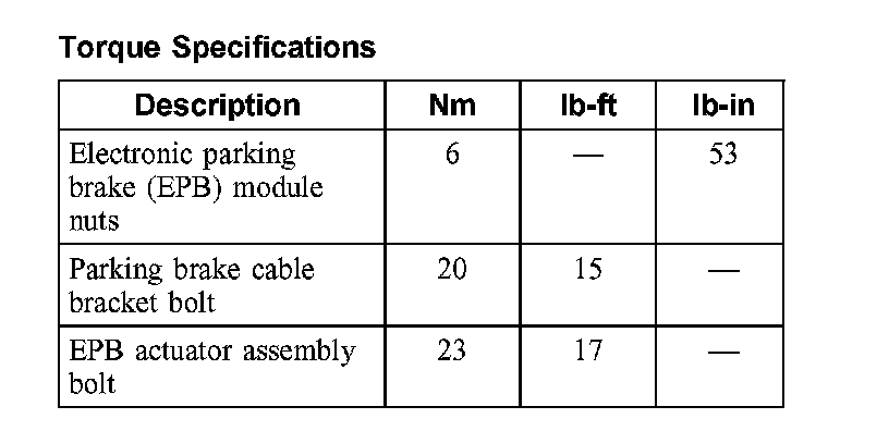 Parking Brake System: Specifications
