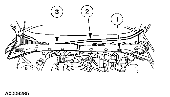 1 Remove the cowl panel grille pin type retainers.