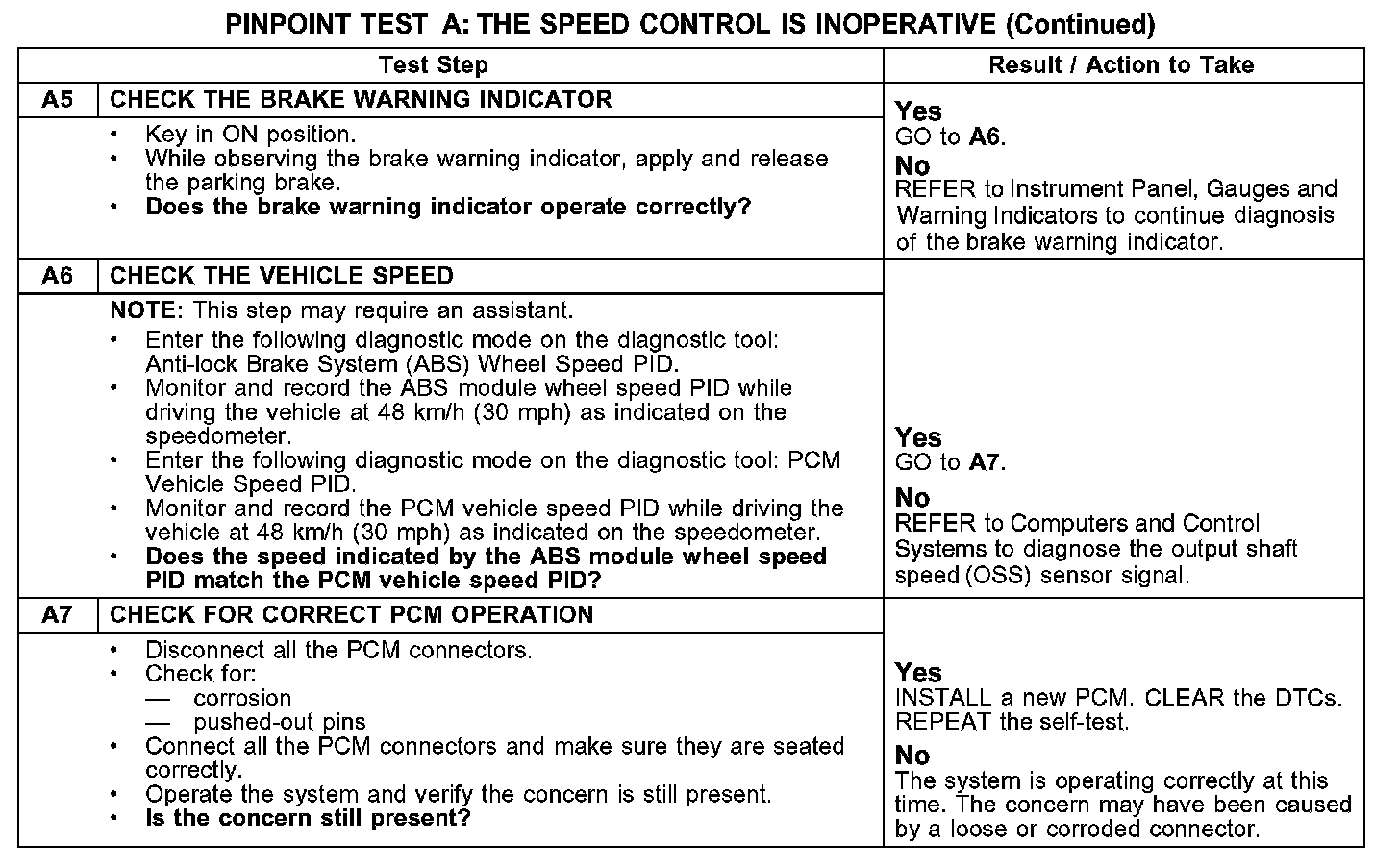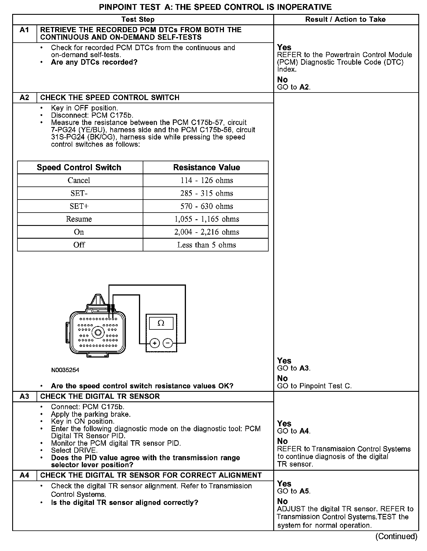 PINPOINT TEST A: THE SPEED CONTROL IS INOPERATIVEA1-A4: