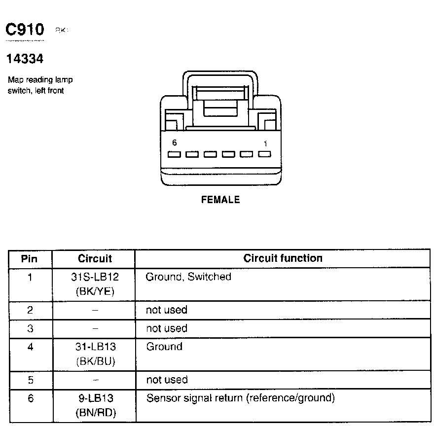 Map Reading Lamp Switch, Left Front