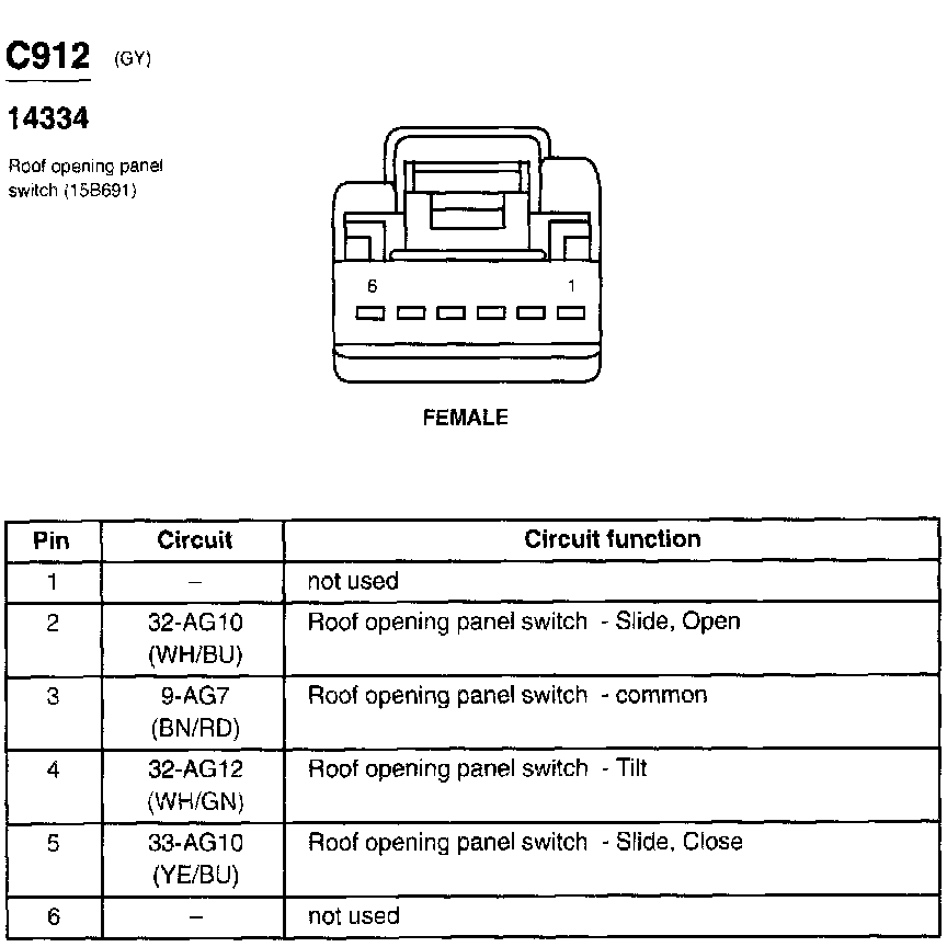 Sunroof / Moonroof Switch