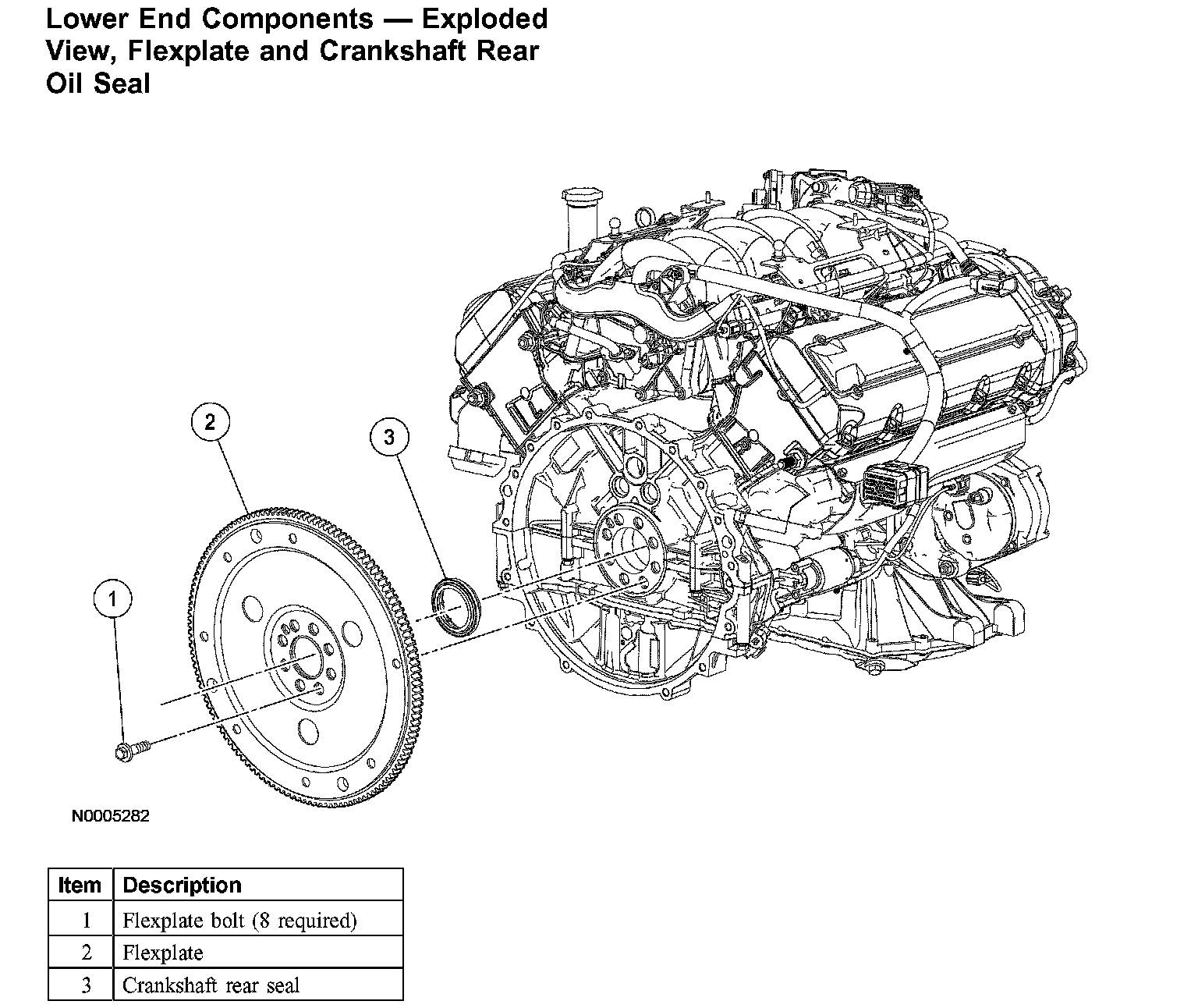 Lower End Components - Exploded View, Flexplate and Crankshaft Rear Oil Seal