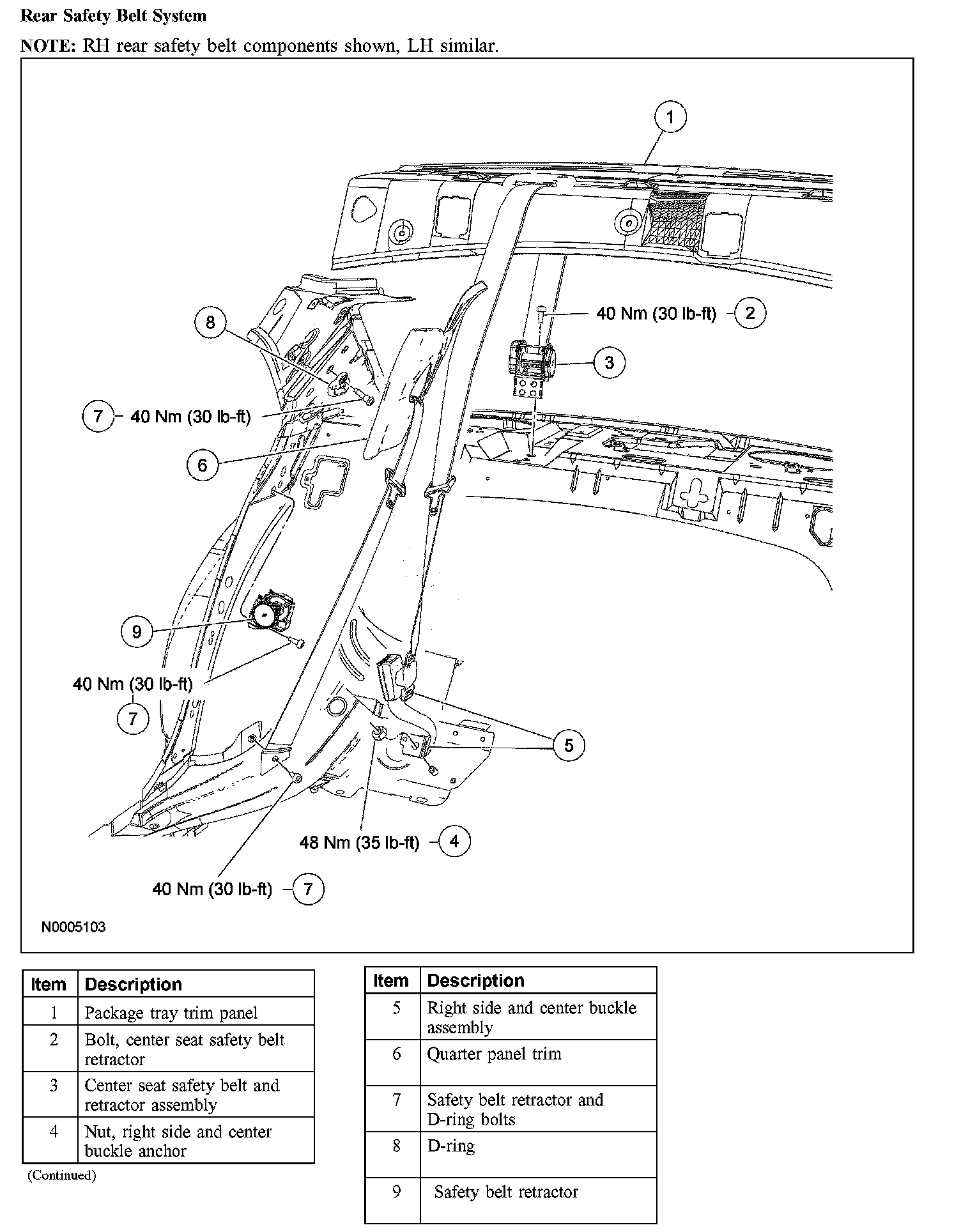 Safety Belt System - Exploded View, Rear