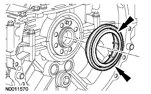 NOTE: Lubricate the cylinder block bore and the crankshaft with clean engine oil before installing the seal.