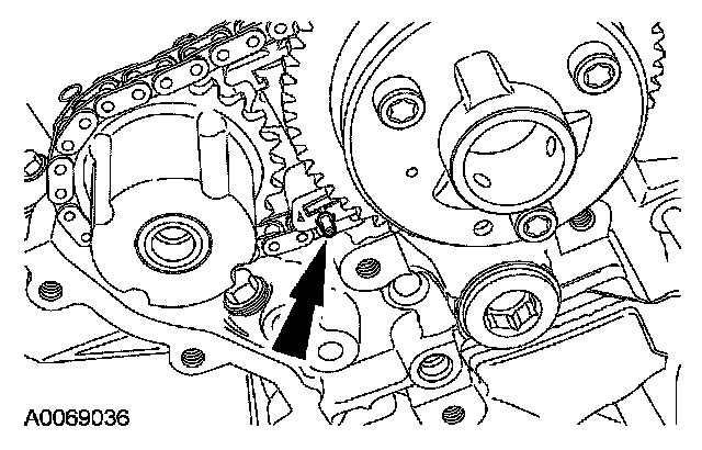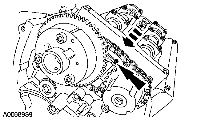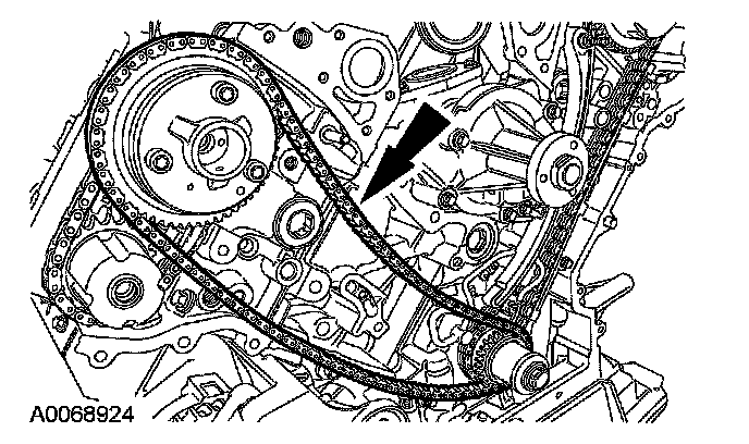 ^ Position the timing chain over the LH intake camshaft sprocket.