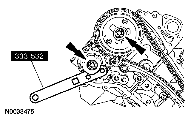 CAUTION: Using the special tool, apply 10 Nm (89 inch lbs.) counterclockwise to the RH exhaust camshaft sprocket.