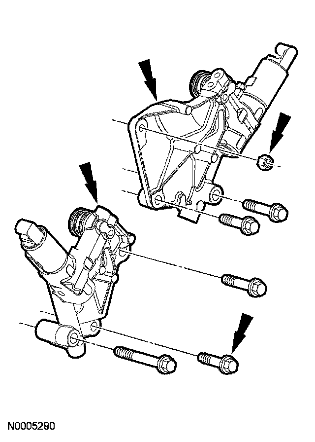Carefully insert the bush carrier into the VCT unit, compress ring seals with fingers as required. Fully seat the bush carrier by hand before fitting the bolts and nut.