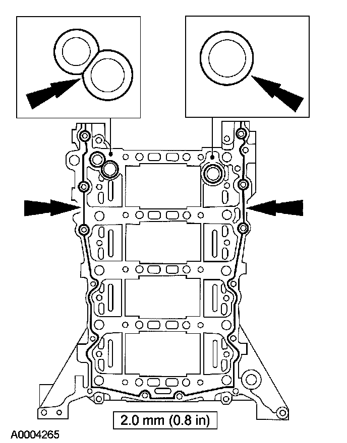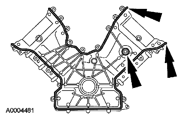 Apply 3 continuous beads of silicone gasket and sealant to the areas shown.
