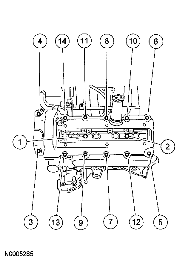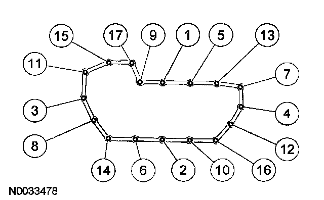 ^ Tighten the 7 bolts and the 3 studs in the sequence shown to 20 Nm (15 ft. lbs.).